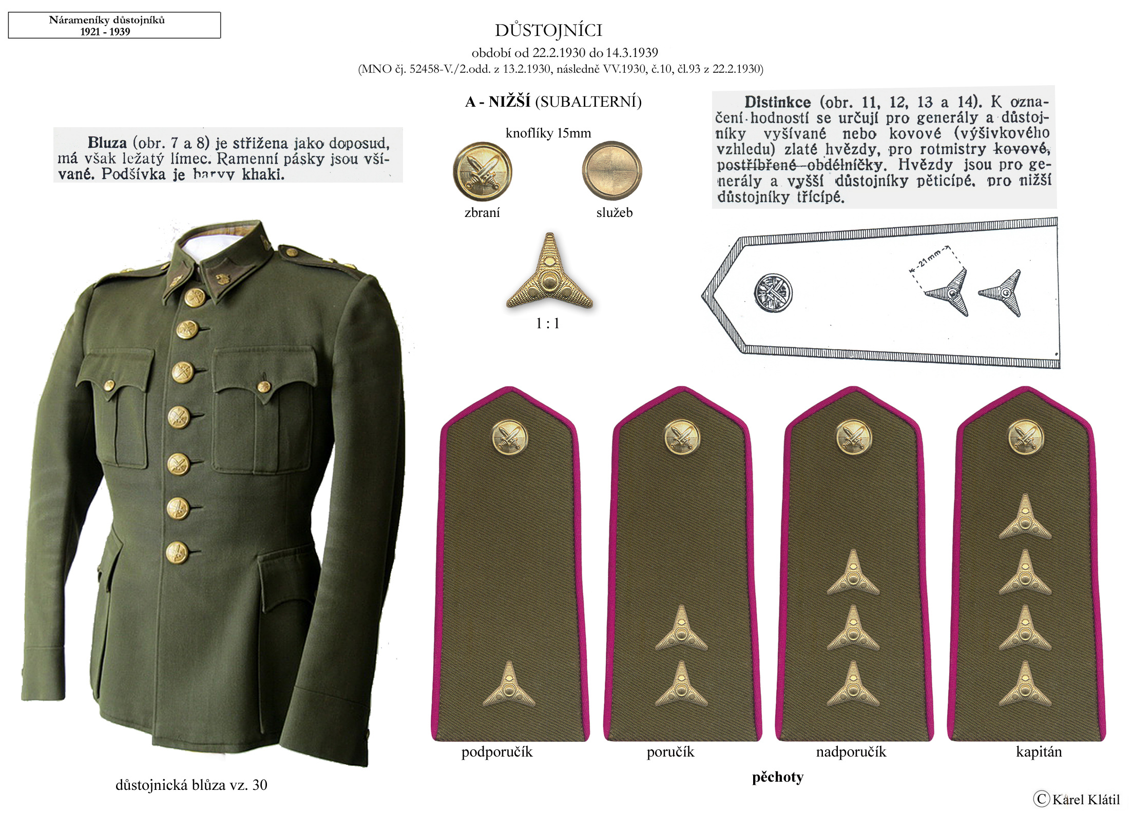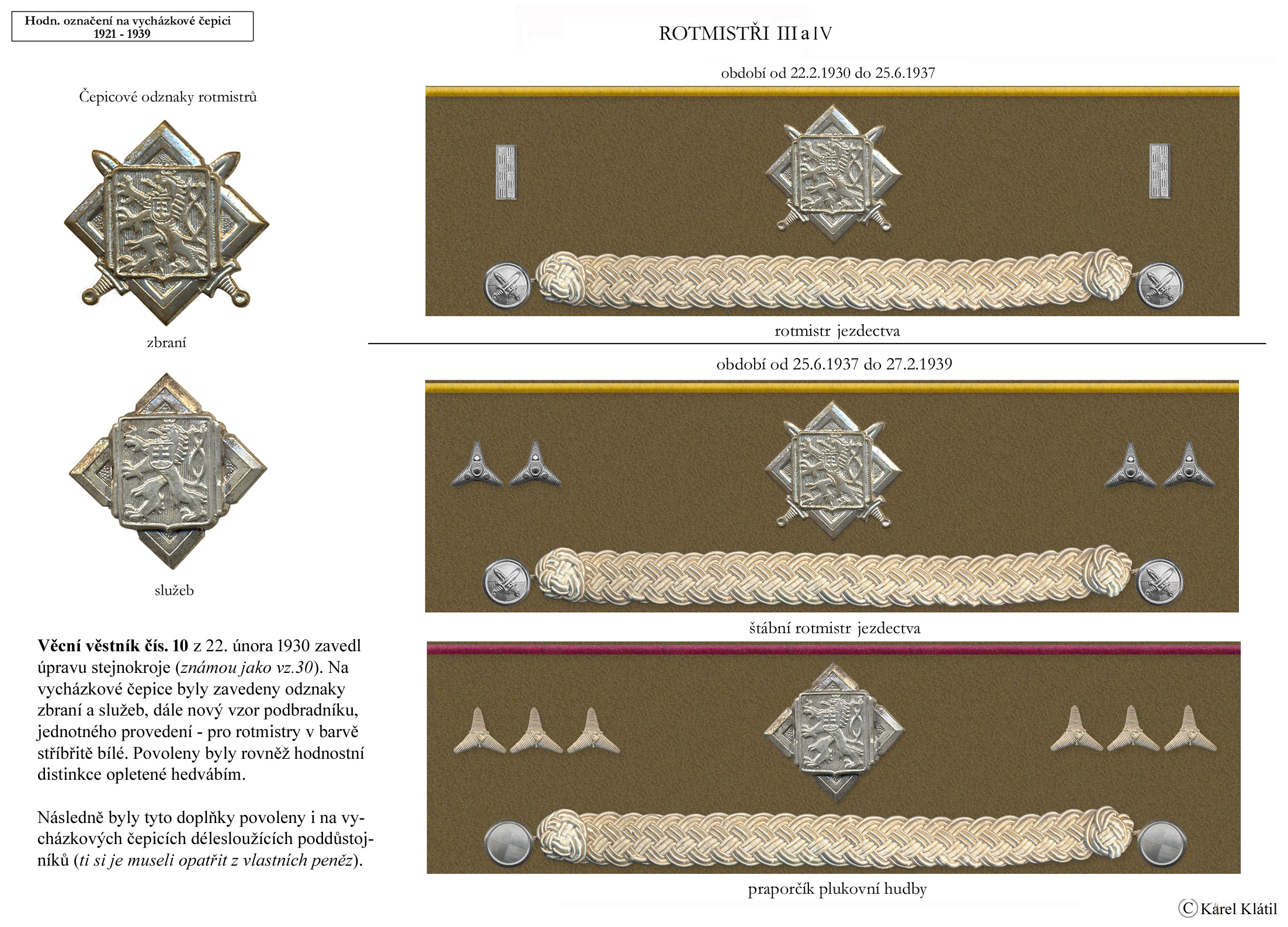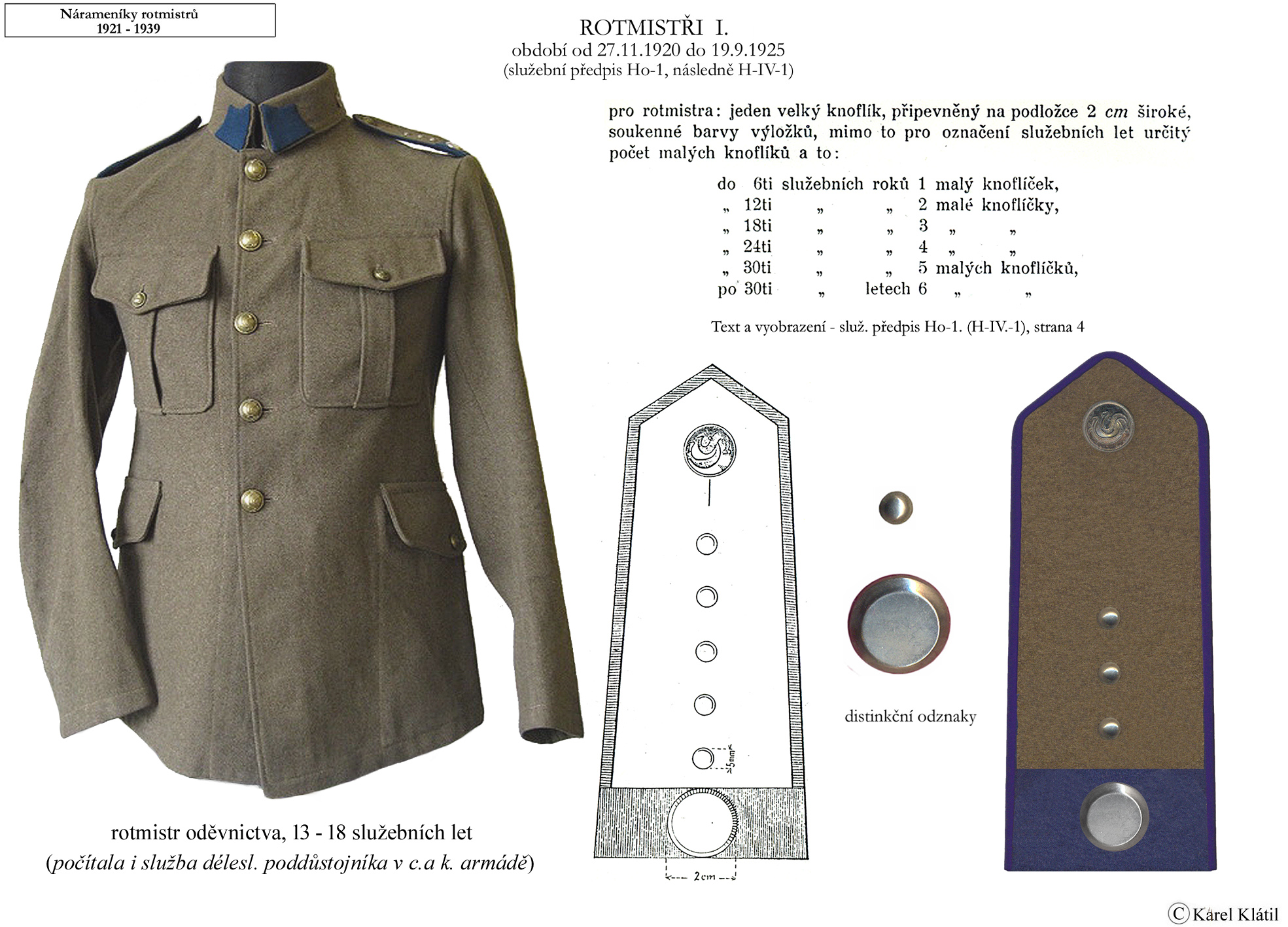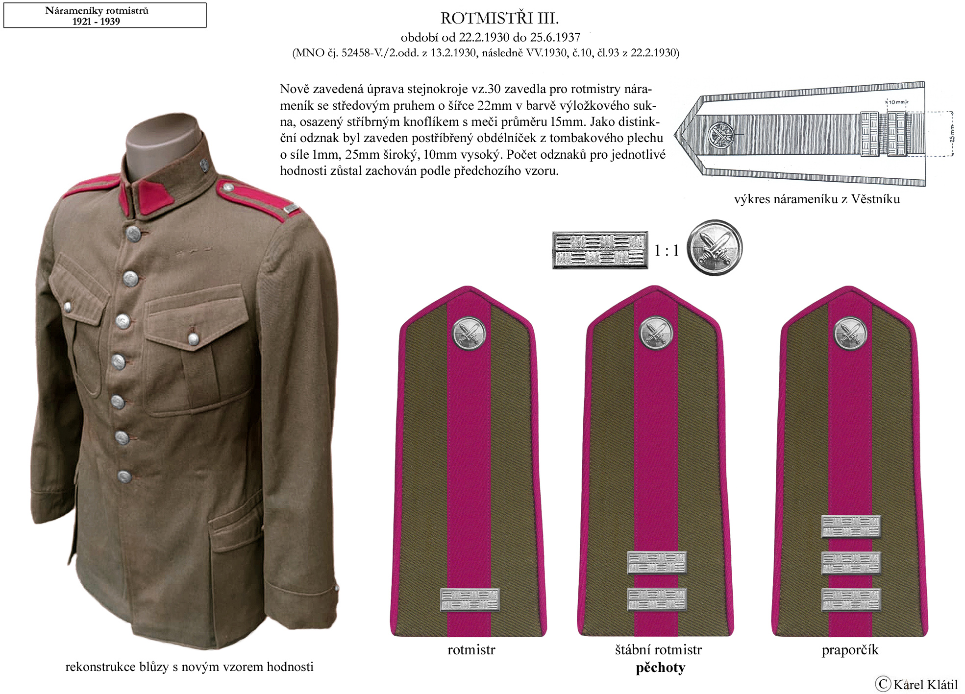 Můj velmi dobrý kamarád, badatel a znalec – Karel Klátil, se dlouhodobě zabývá tvorbou přehledných materiálů o historii a reáliích armádních stejnokrojů z dob Československé první republiky.