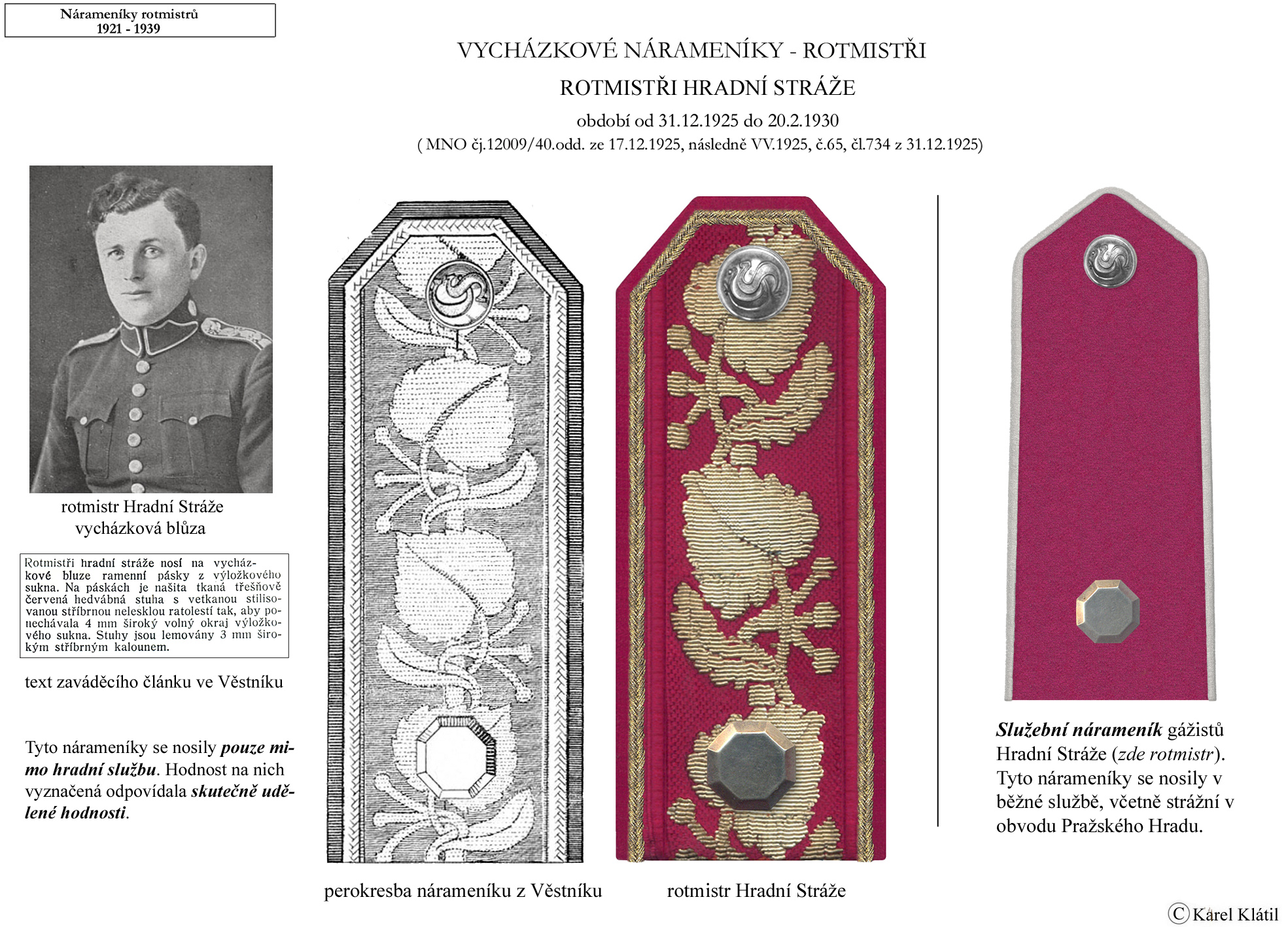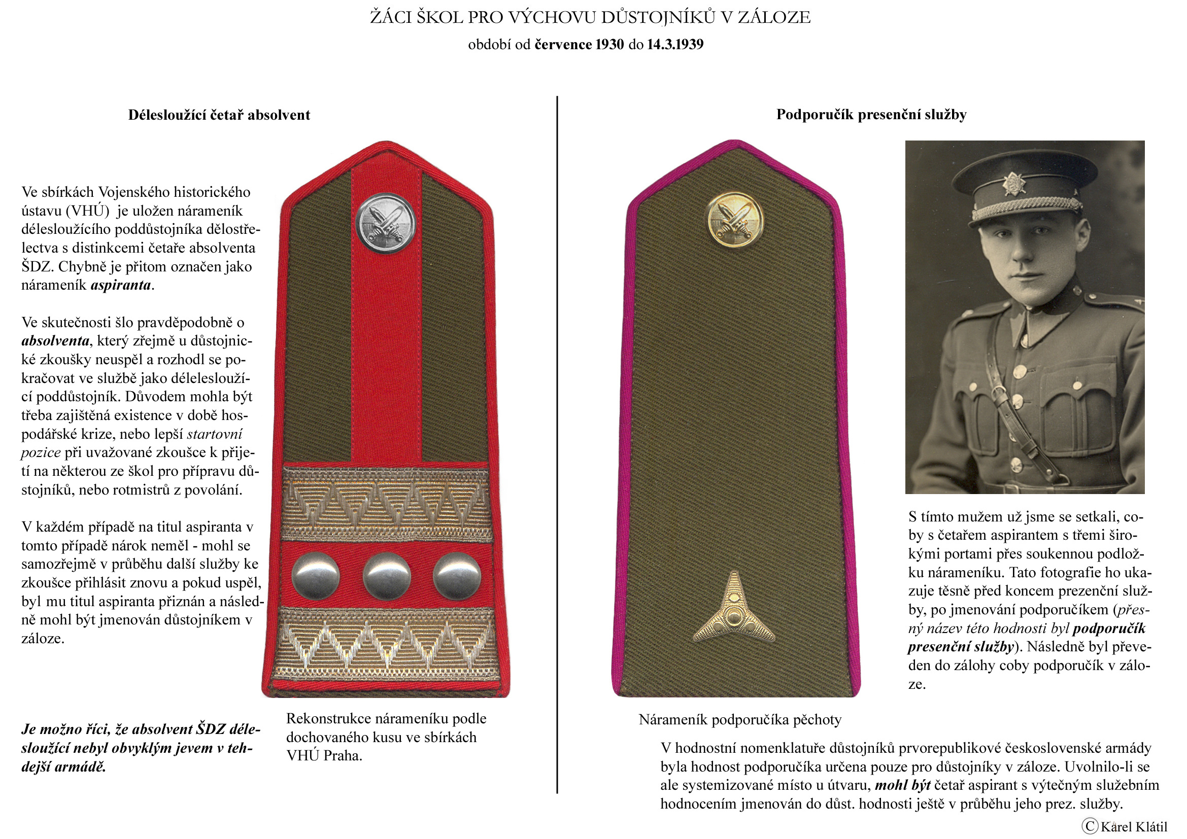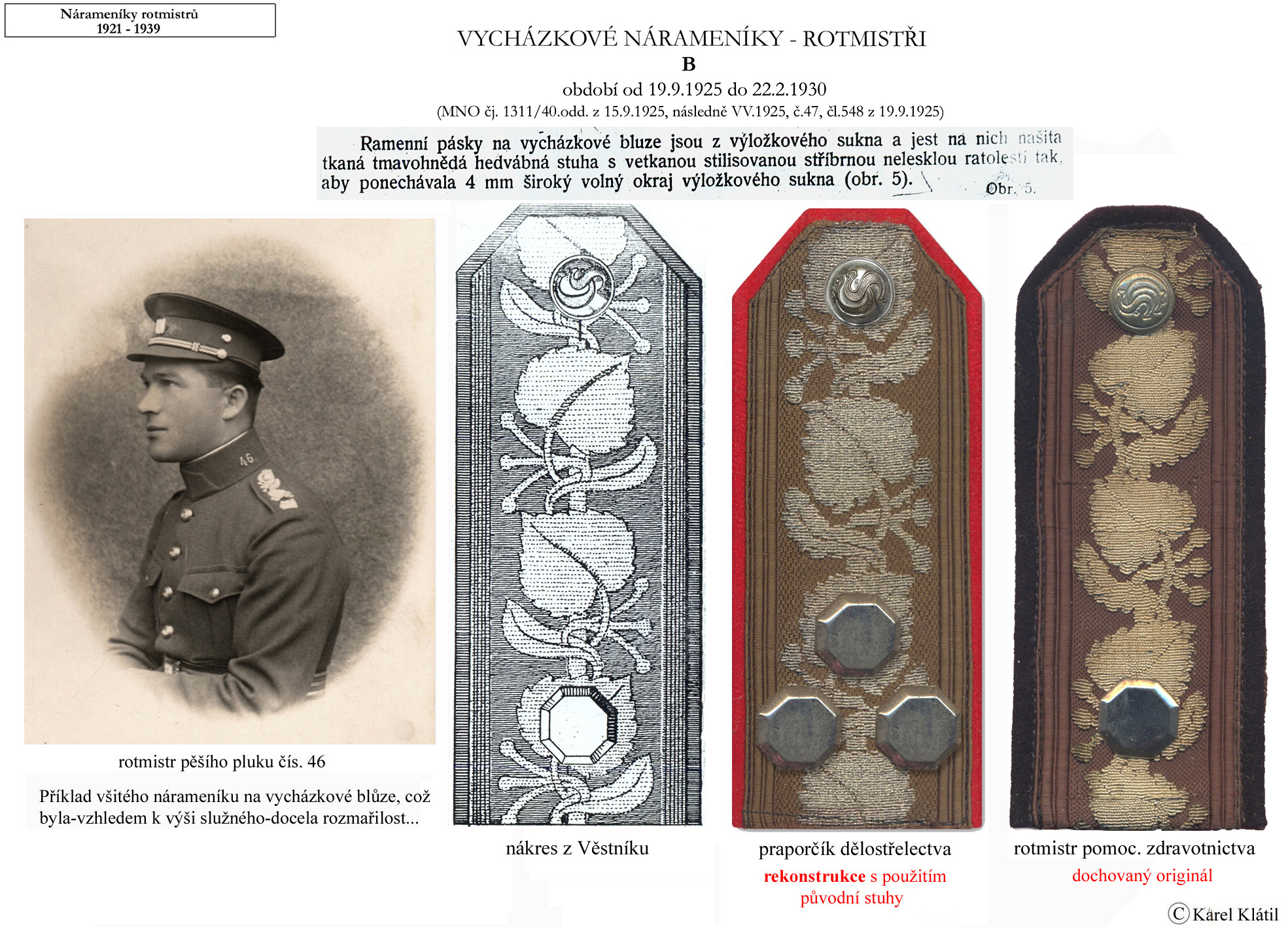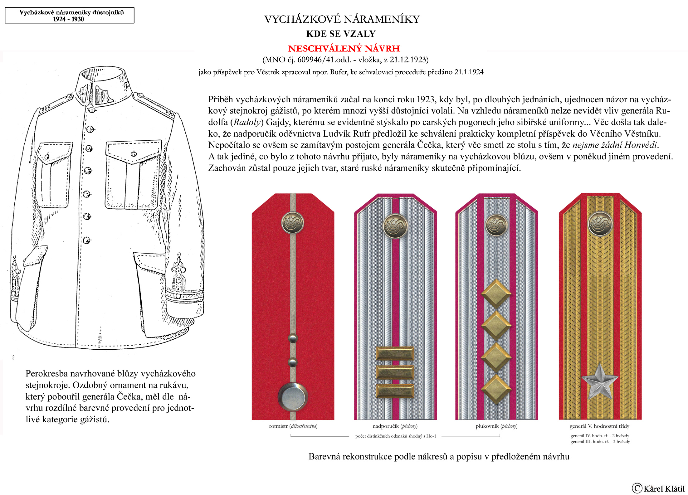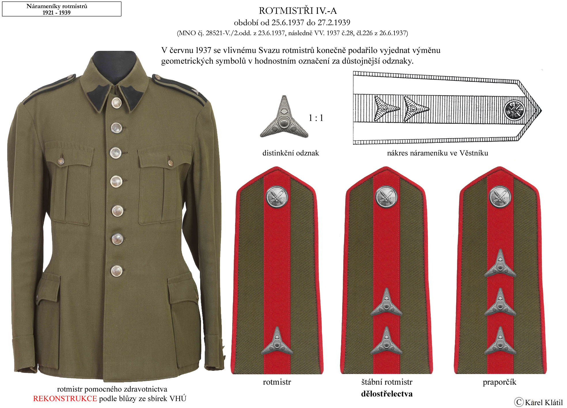 Můj velmi dobrý kamarád, badatel a znalec – Karel Klátil, se dlouhodobě zabývá tvorbou přehledných materiálů o historii a reáliích armádních stejnokrojů z dob Československé první republiky.