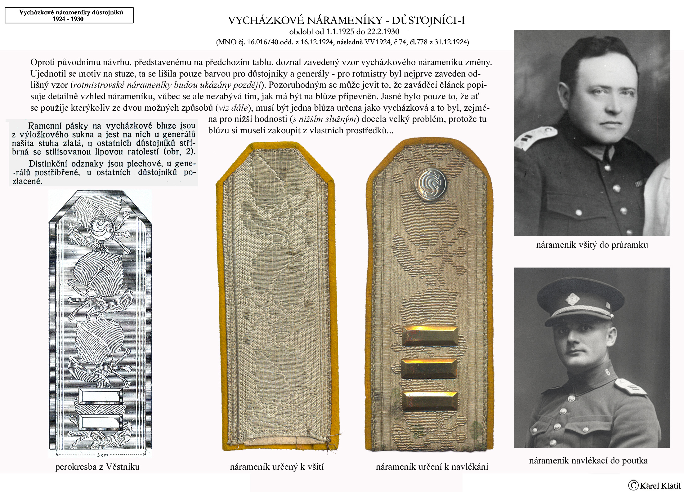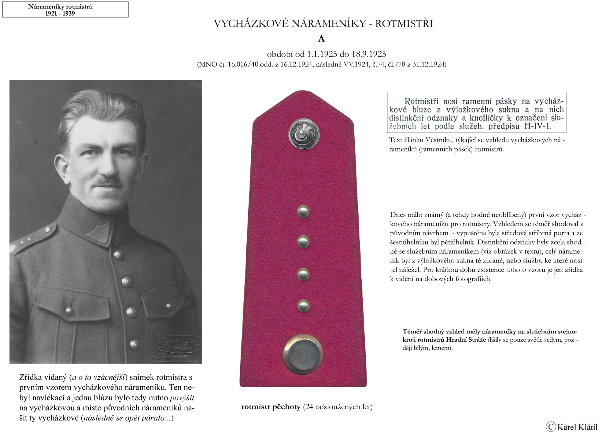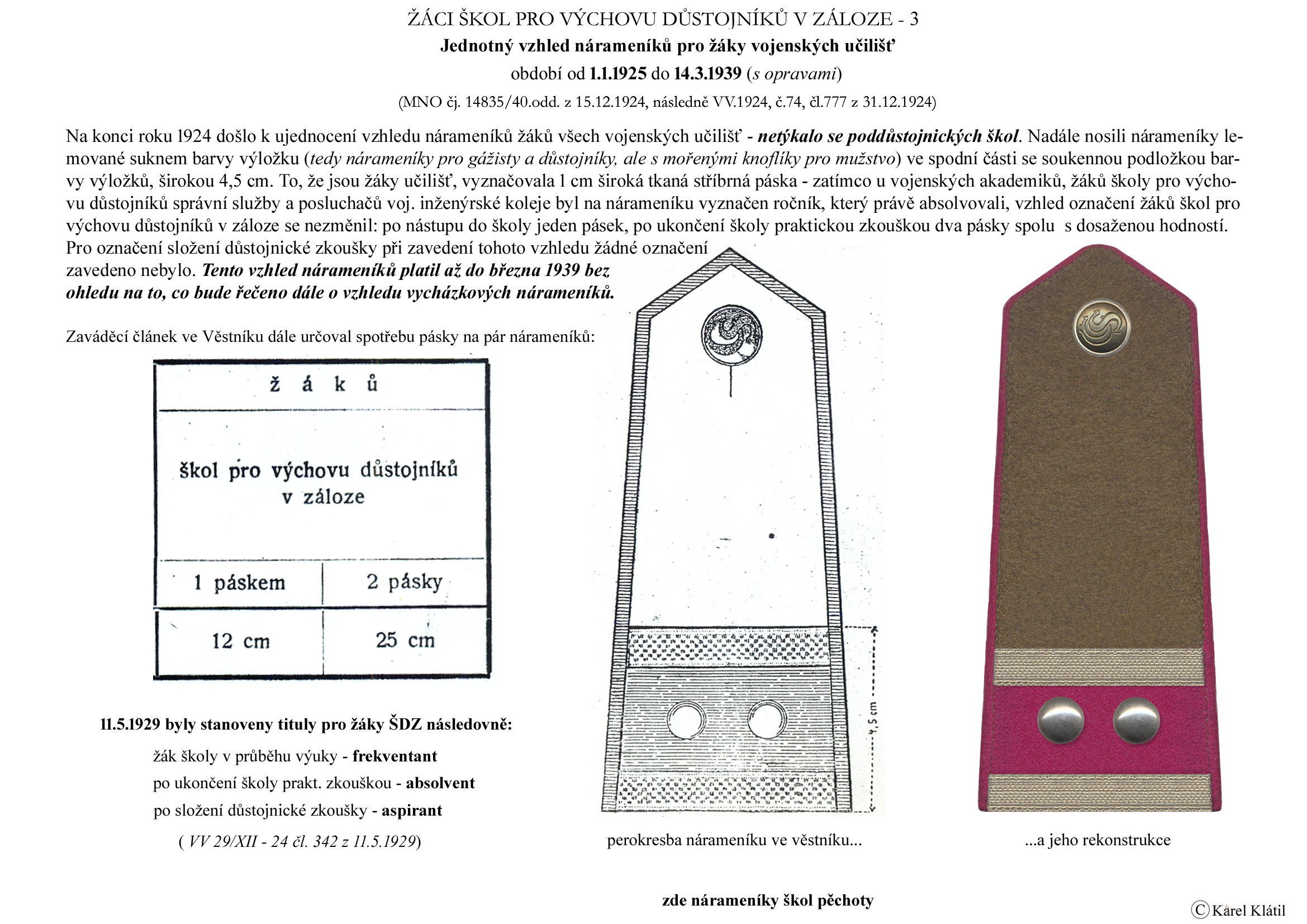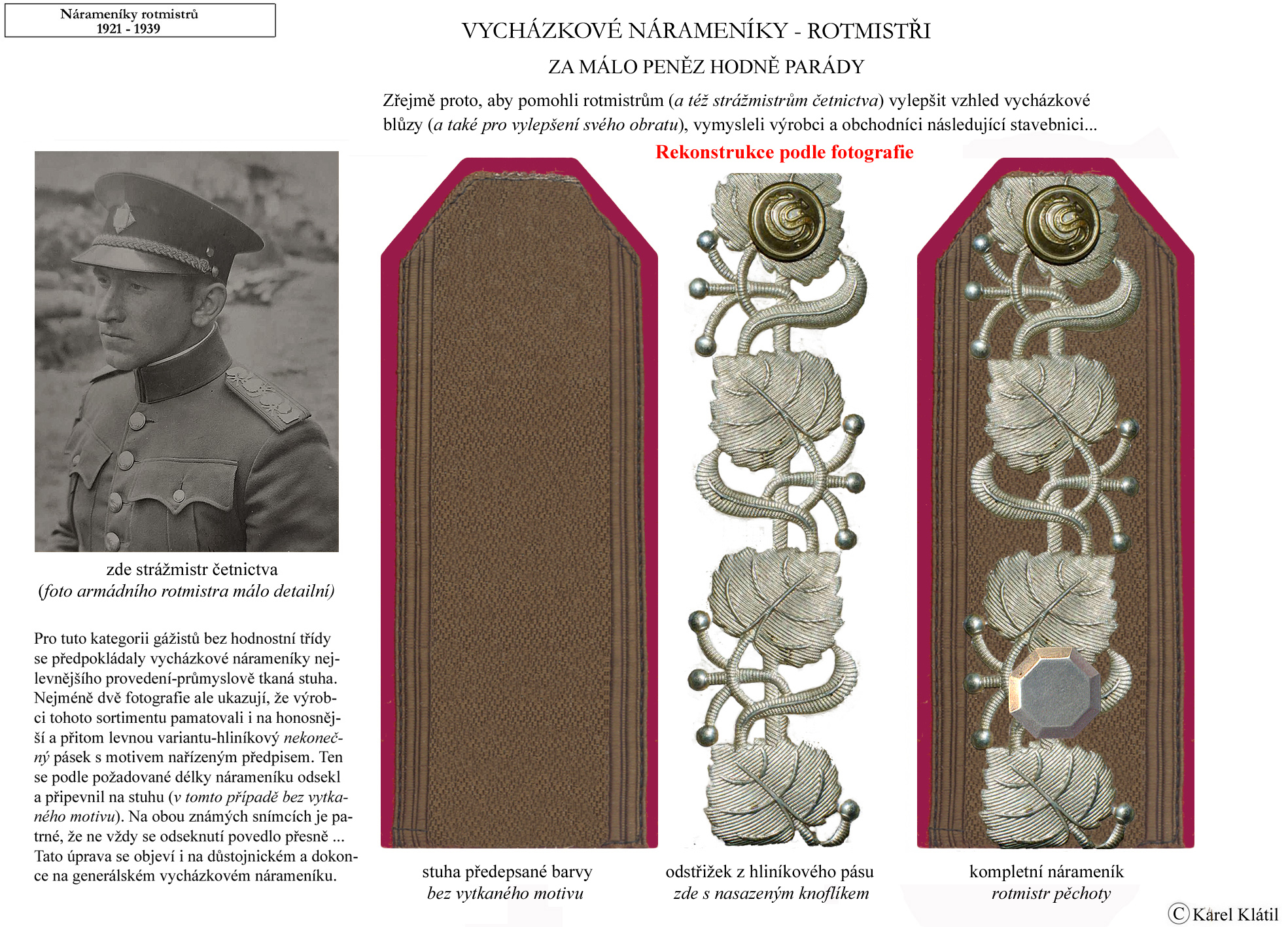 Můj velmi dobrý kamarád, badatel a znalec – Karel Klátil, se dlouhodobě zabývá tvorbou přehledných materiálů o historii a reáliích armádních stejnokrojů z dob Československé první republiky.