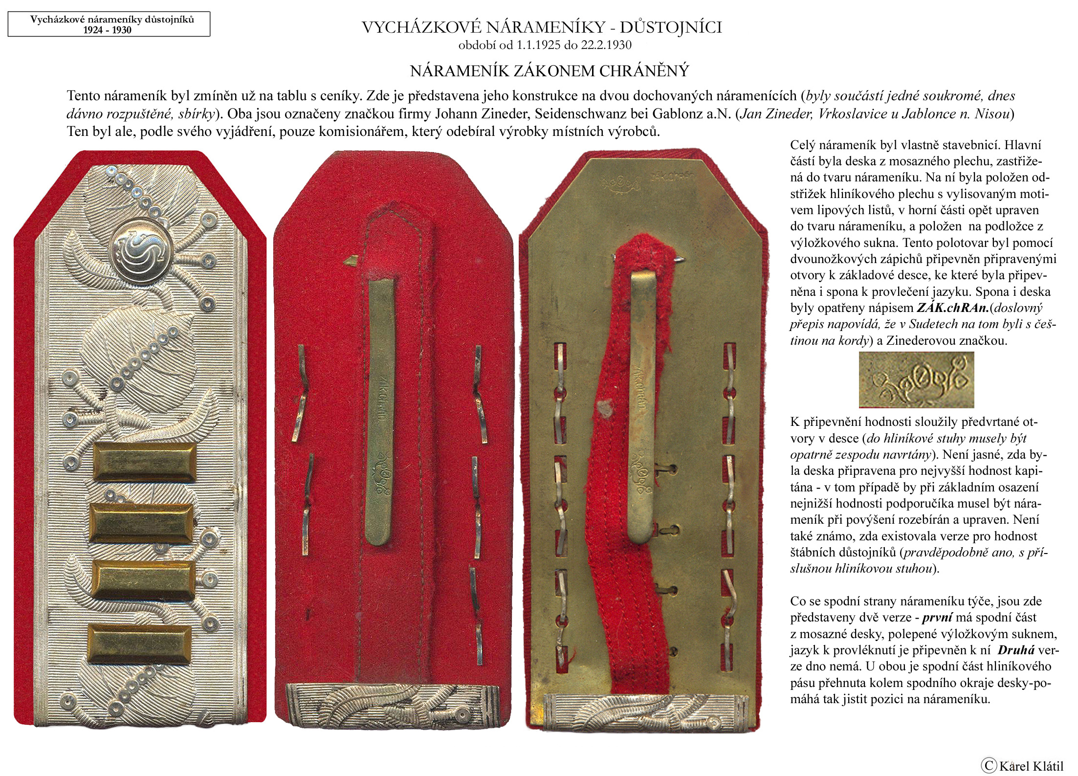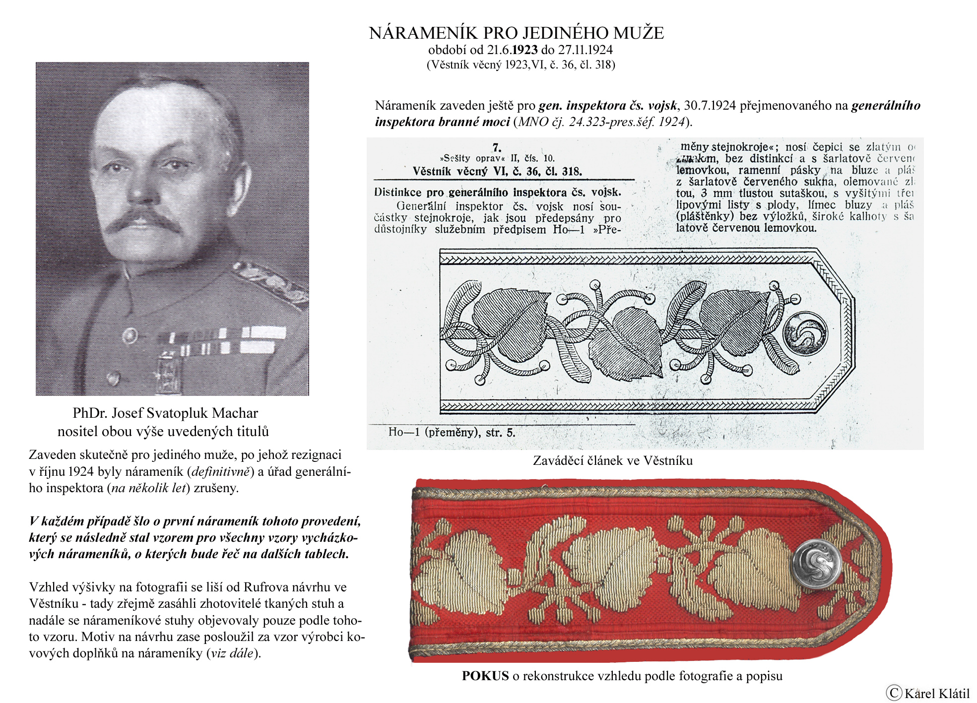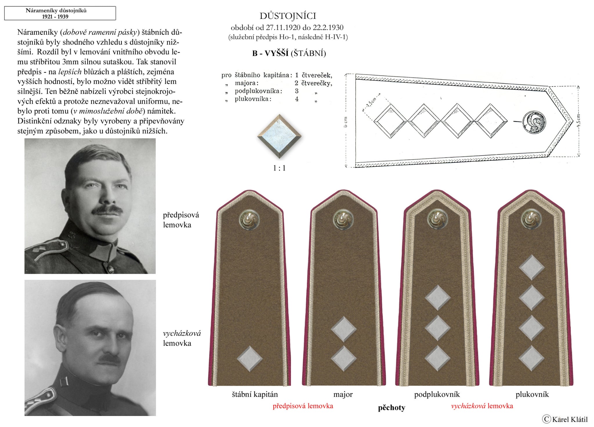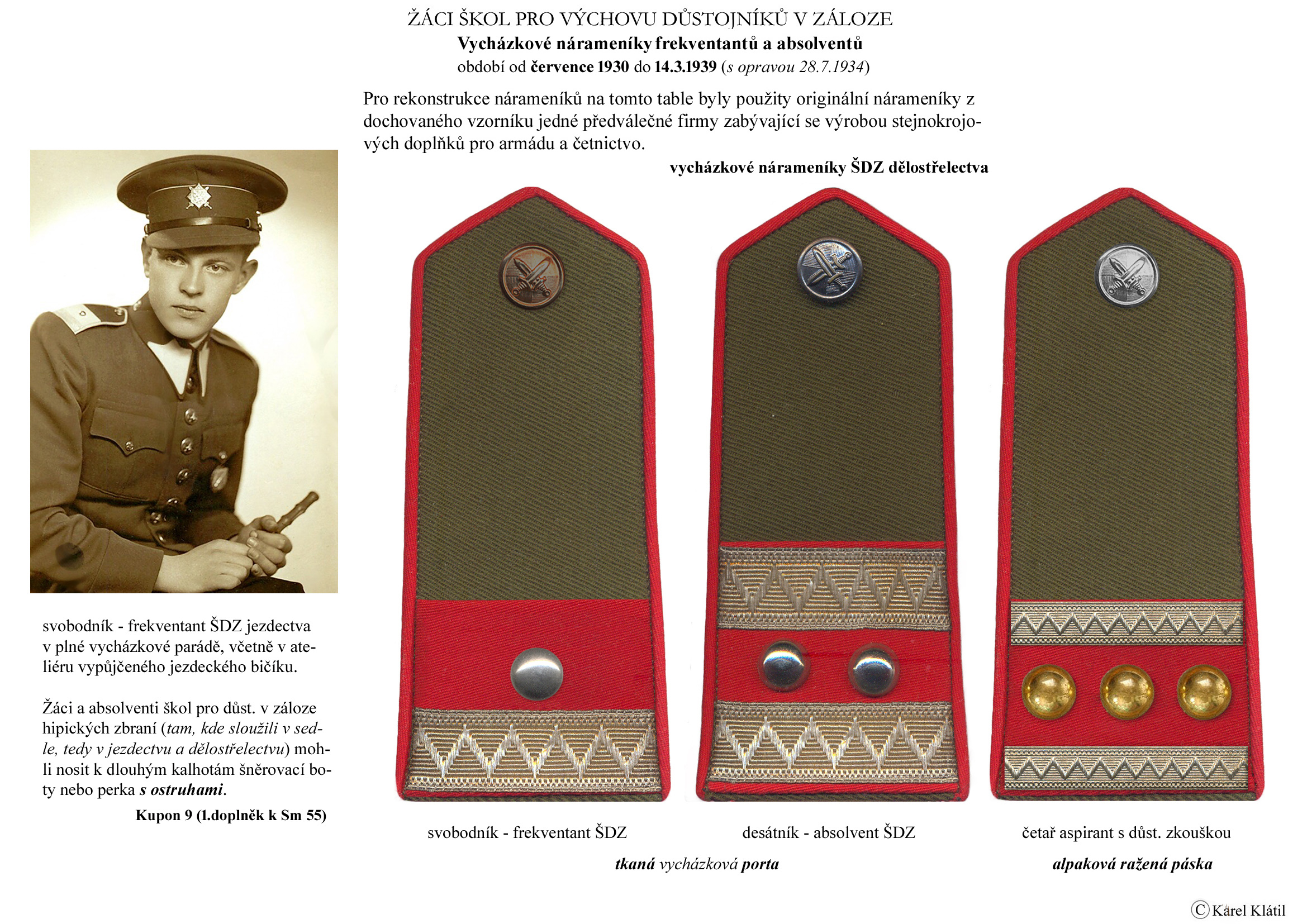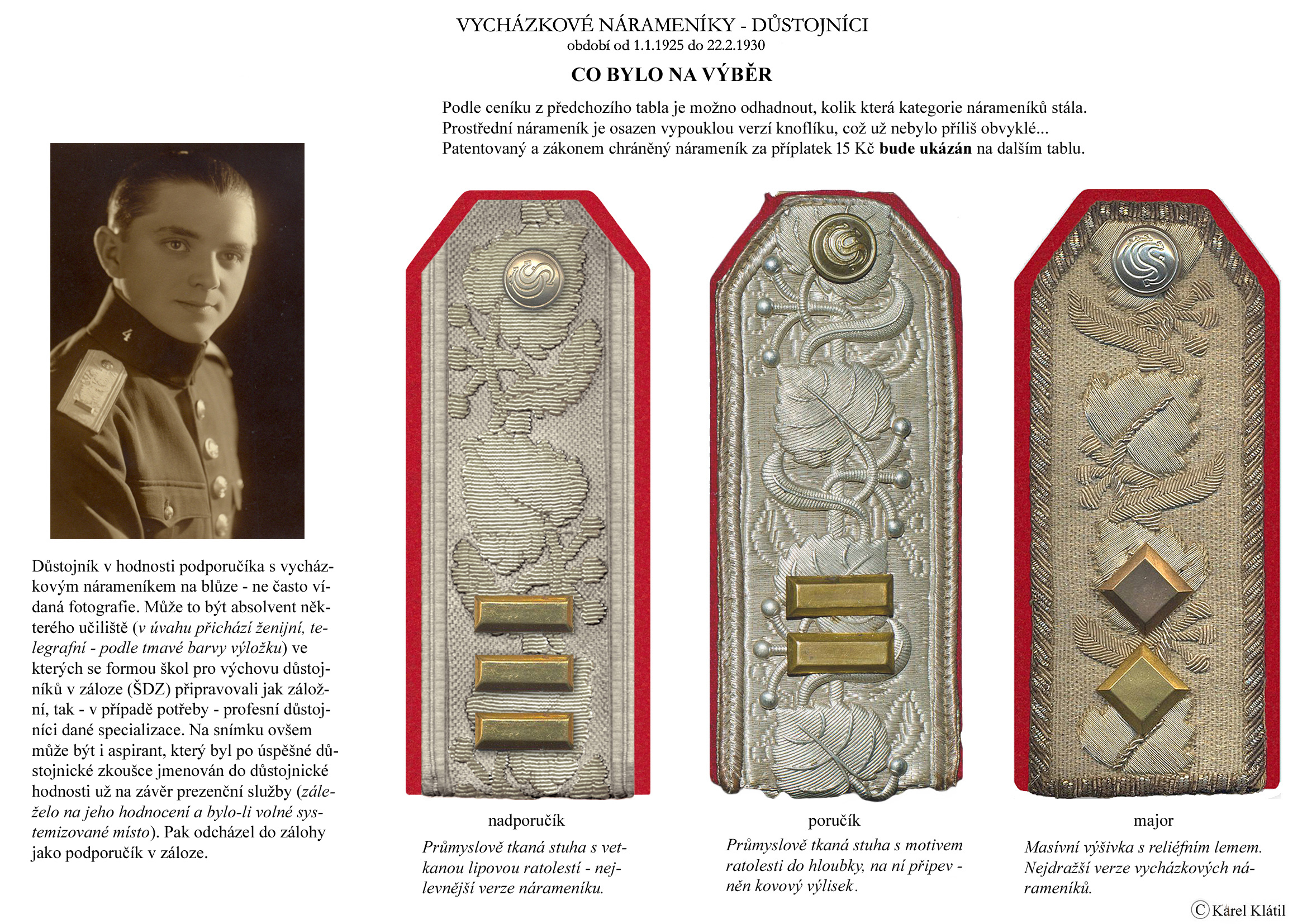 Můj velmi dobrý kamarád, badatel a znalec – Karel Klátil, se dlouhodobě zabývá tvorbou přehledných materiálů o historii a reáliích armádních stejnokrojů z dob Československé první republiky.