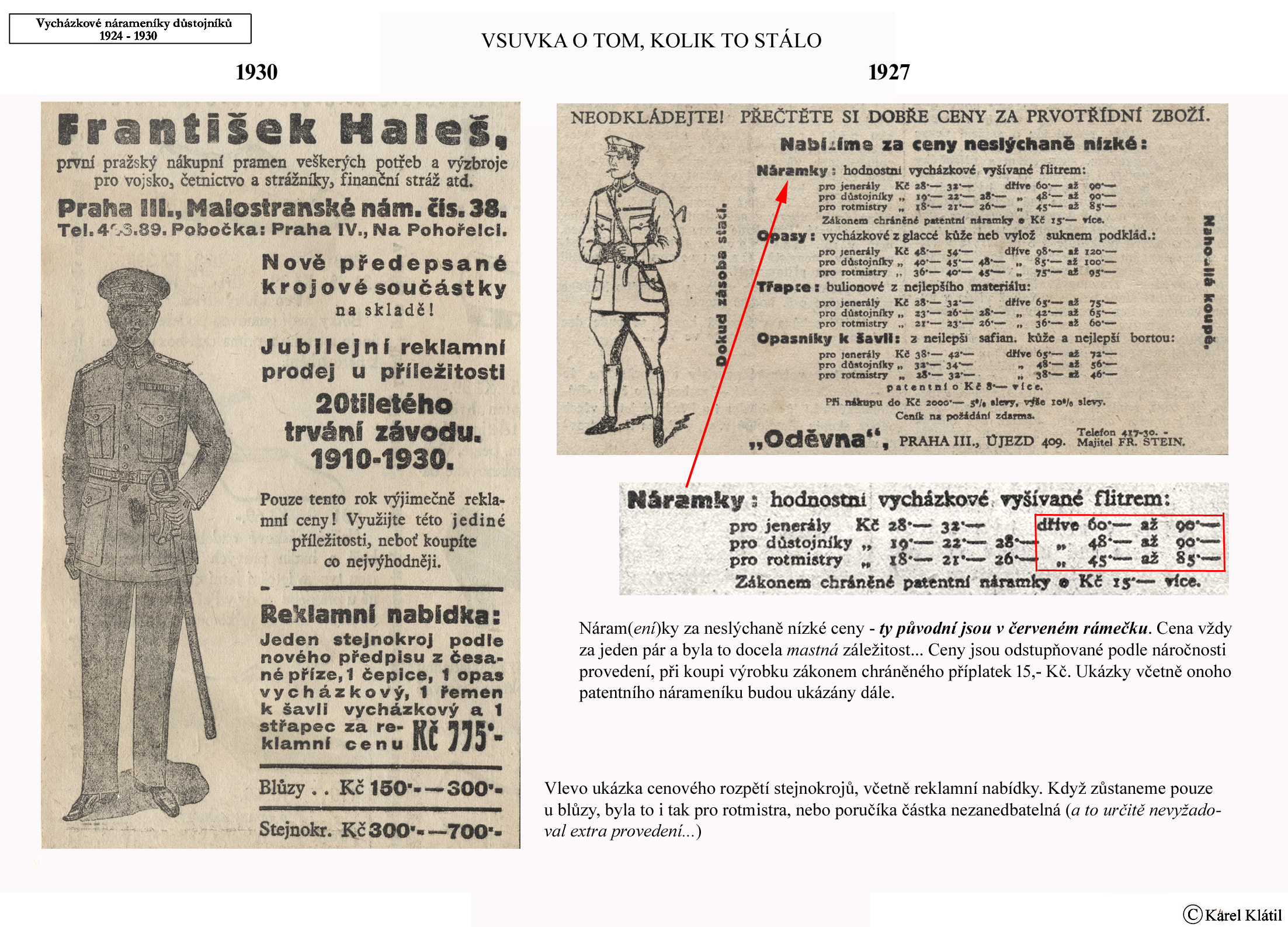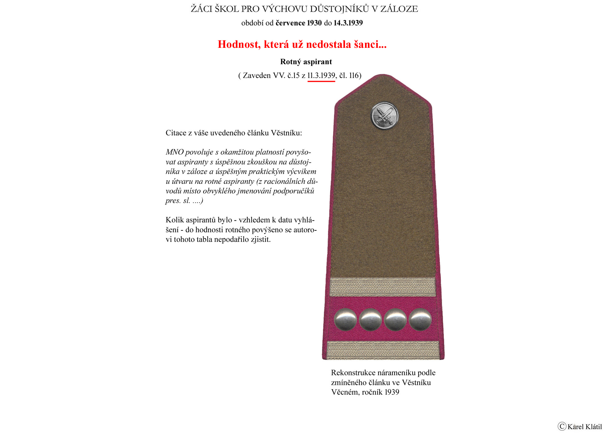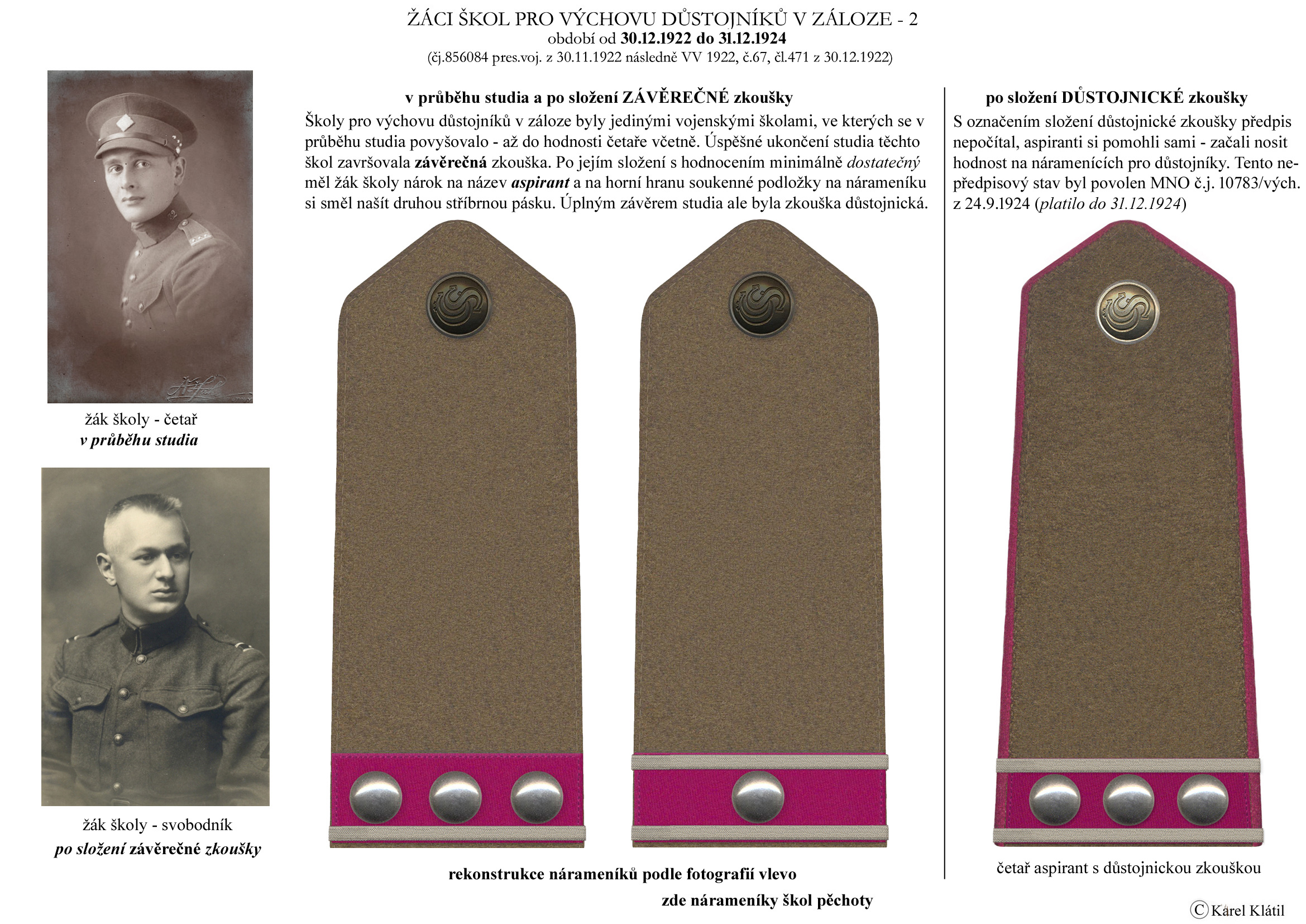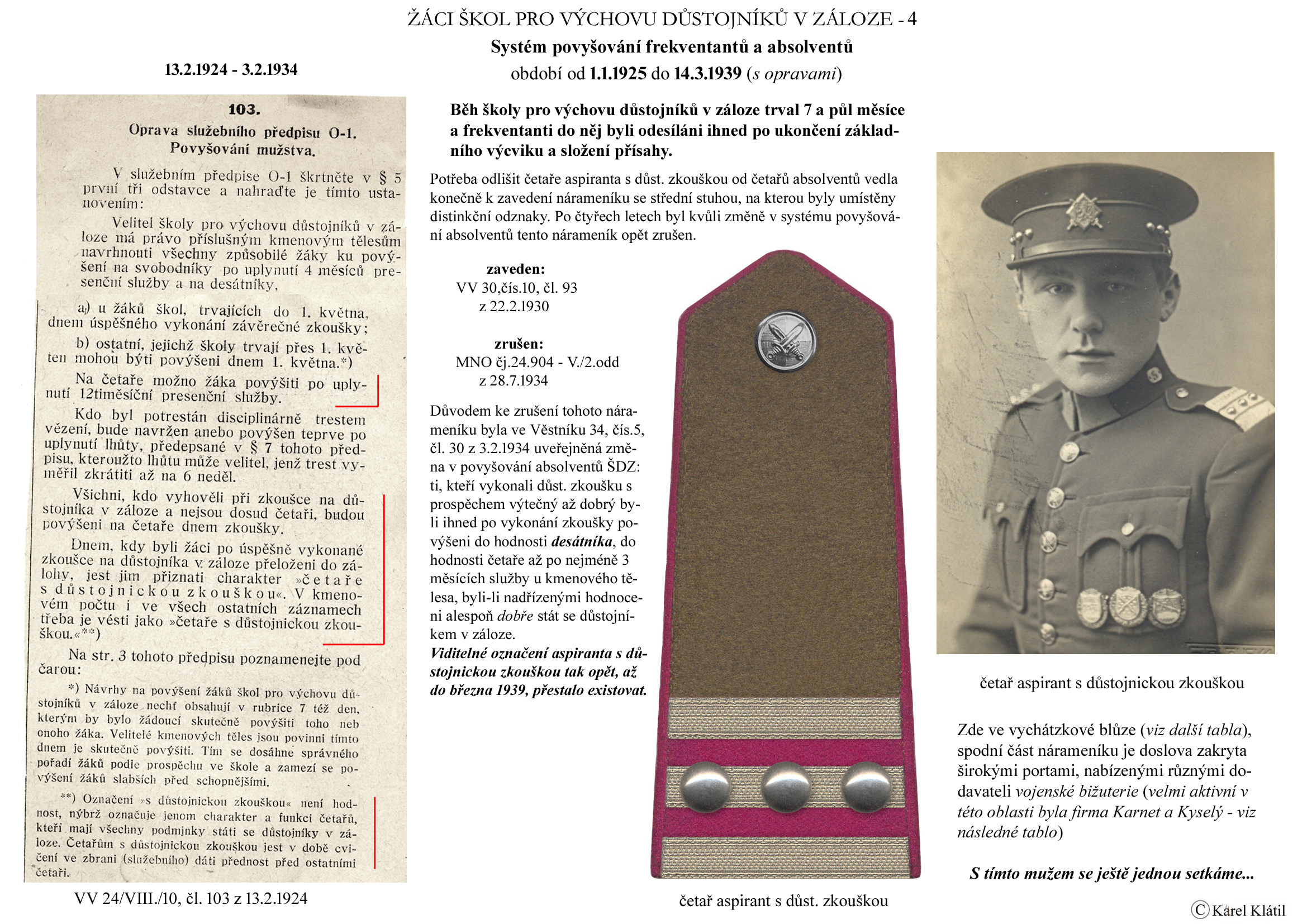 Můj velmi dobrý kamarád, badatel a znalec – Karel Klátil, se dlouhodobě zabývá tvorbou přehledných materiálů o historii a reáliích armádních stejnokrojů z dob Československé první republiky.