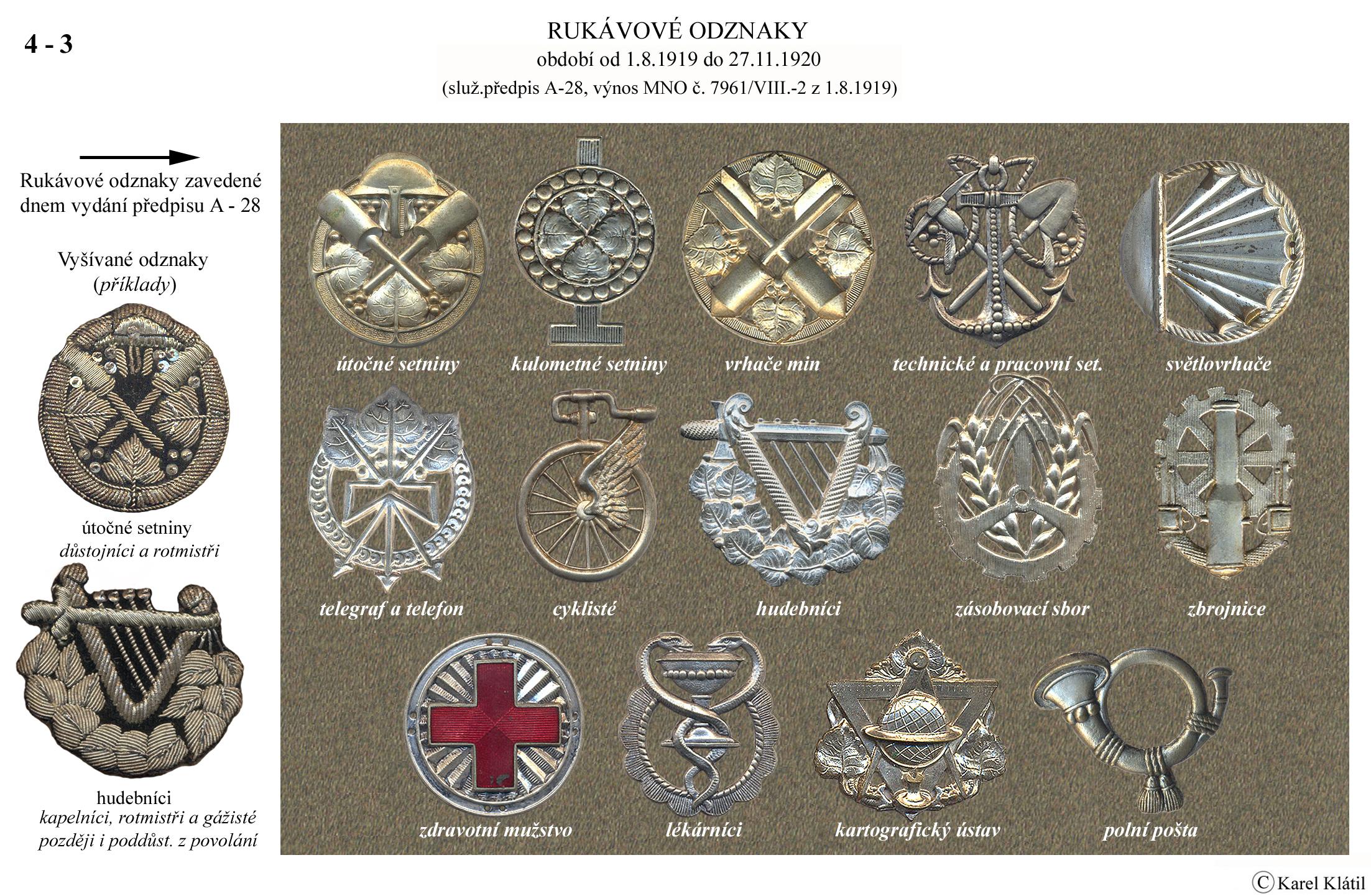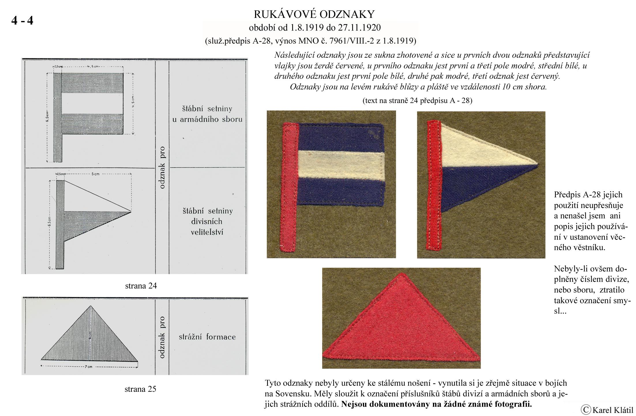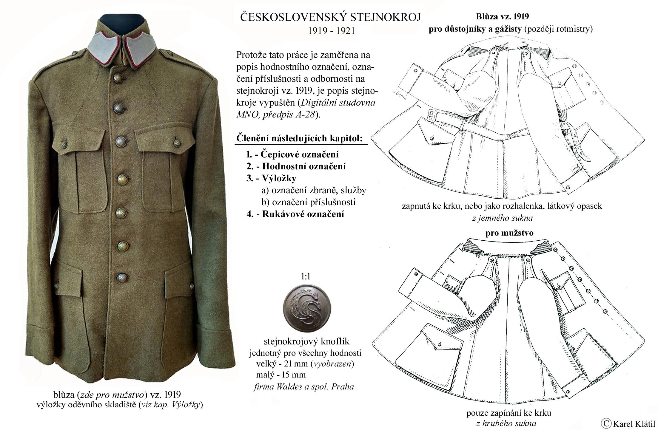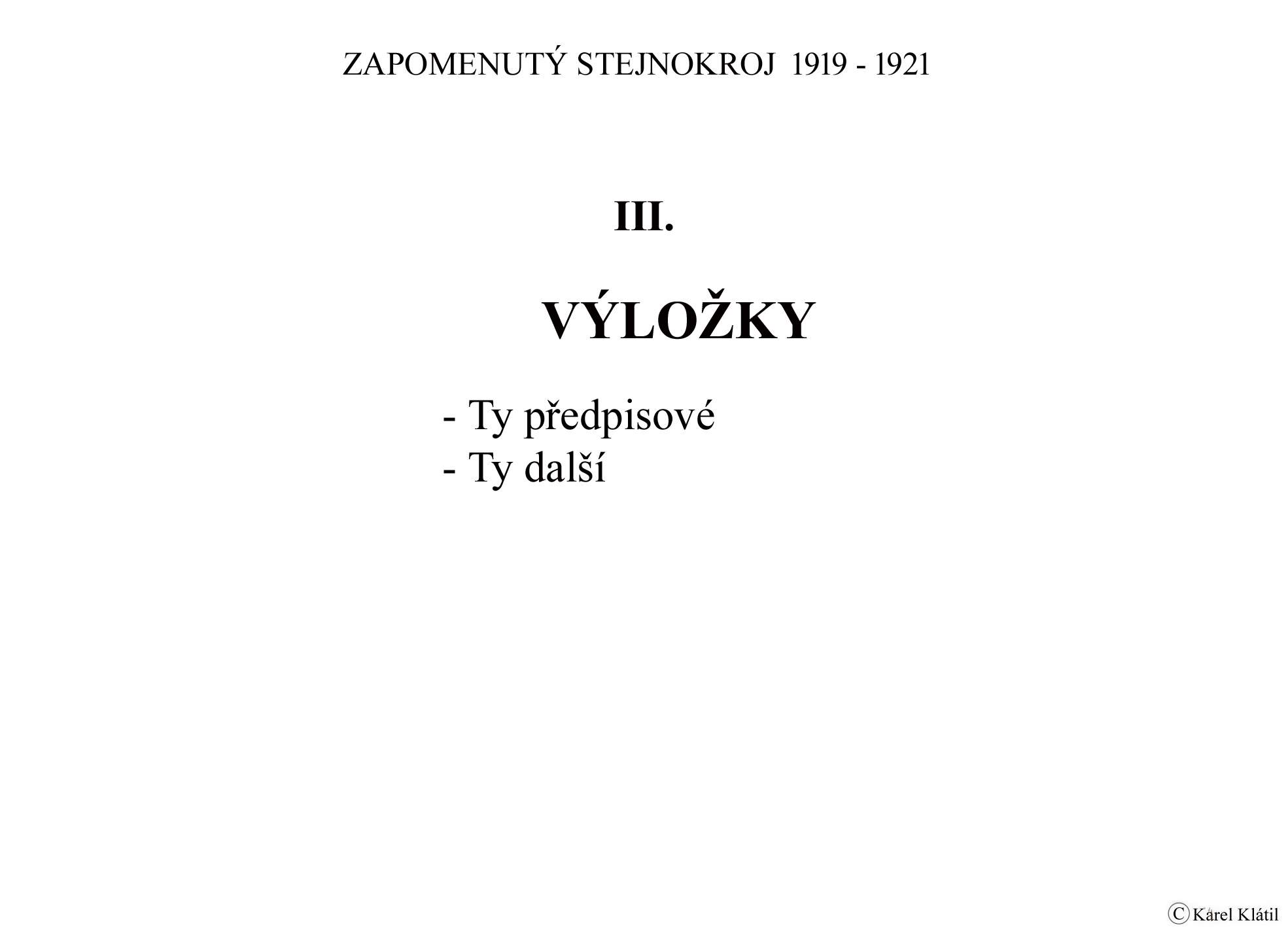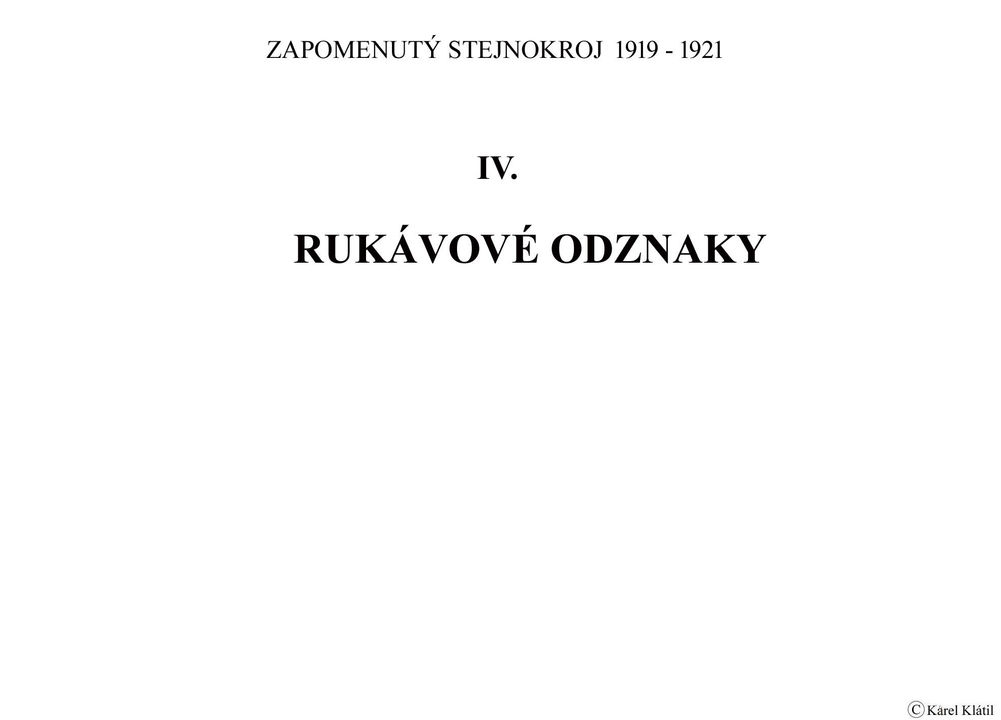 1919/21 Československé vojsko – Divoká léta Zapomenutý stejnokroj: Hodnostní označení: Výložky: Rukávové odznaky: