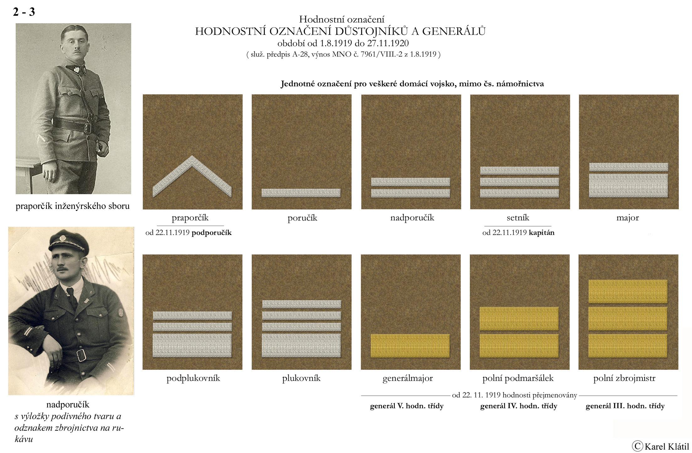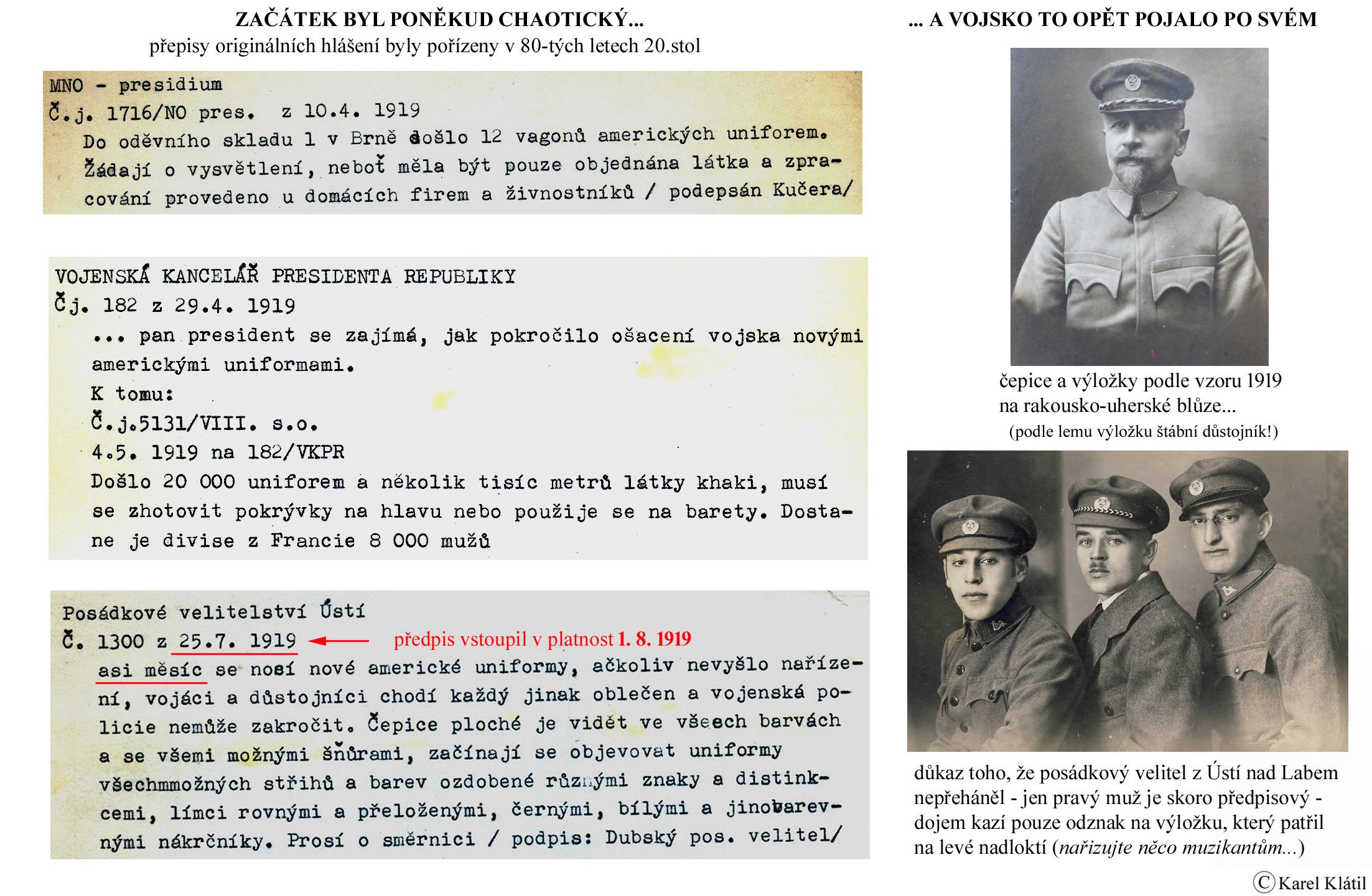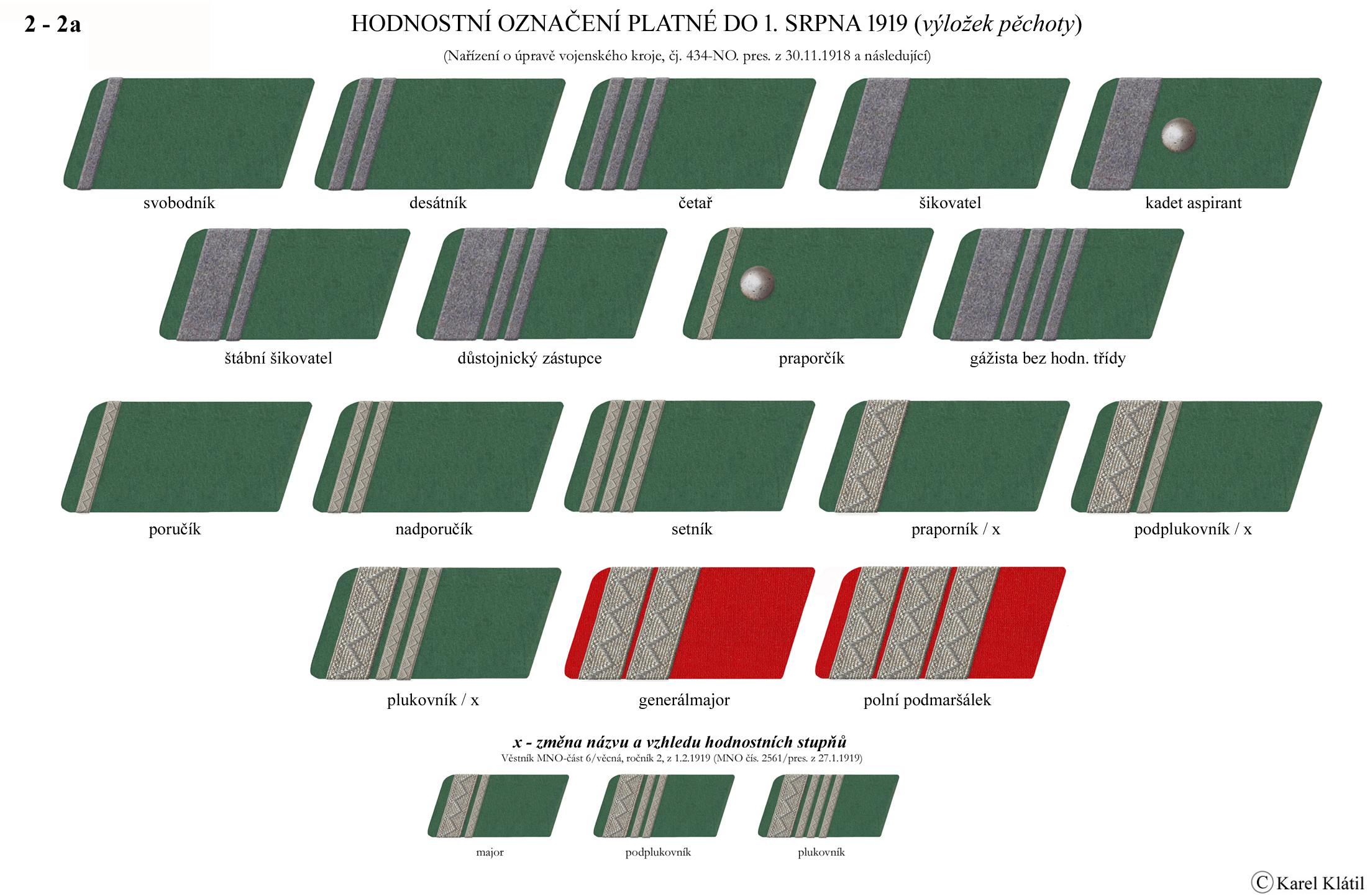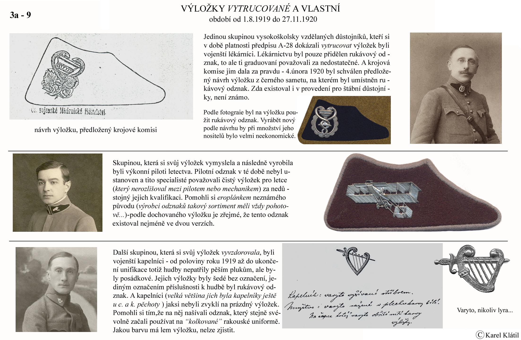 1919/21 Československé vojsko – Divoká léta Zapomenutý stejnokroj: Hodnostní označení: Výložky: Rukávové odznaky: