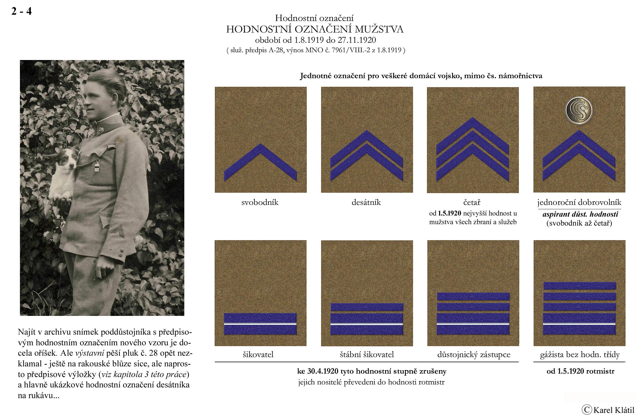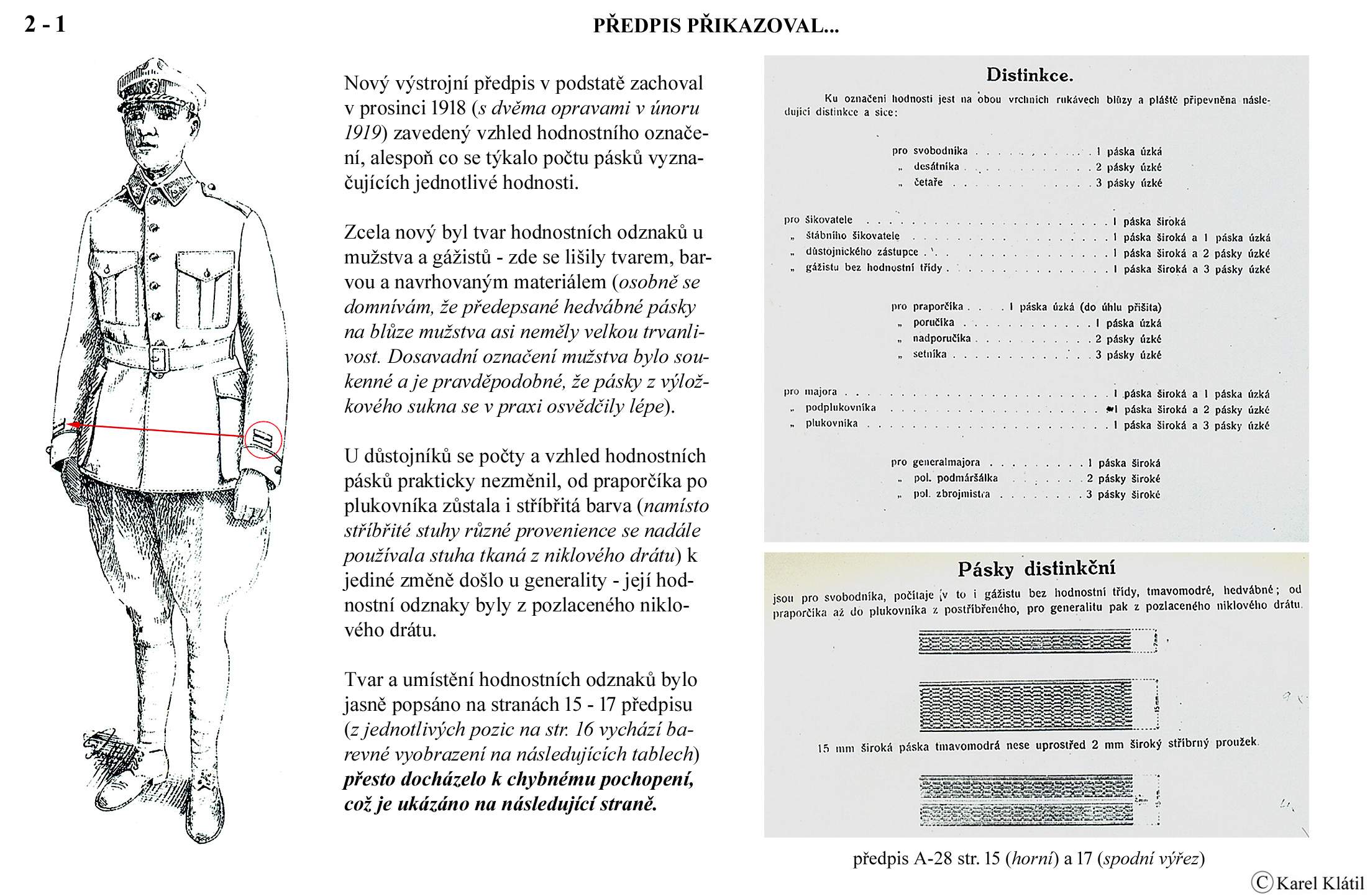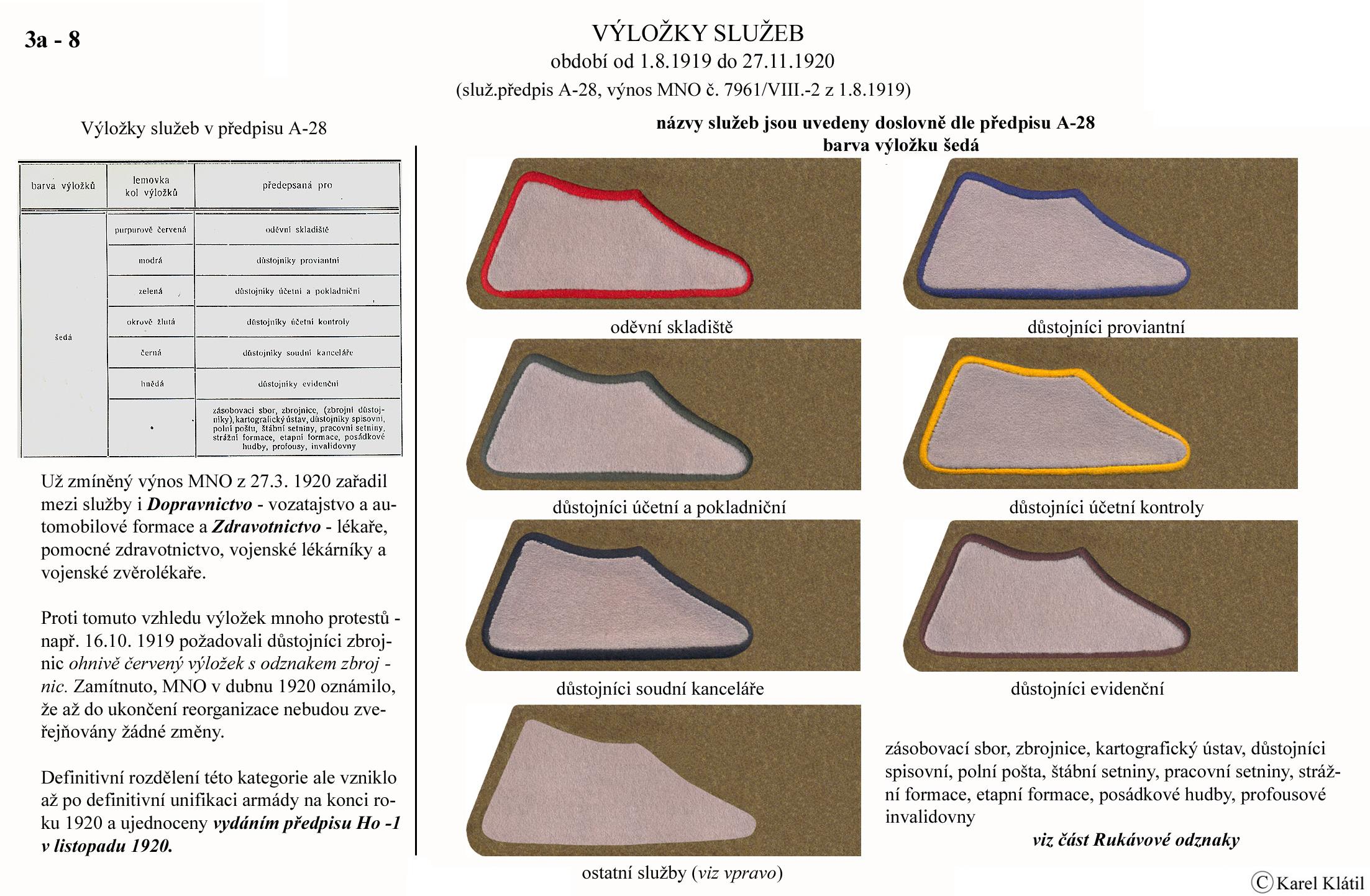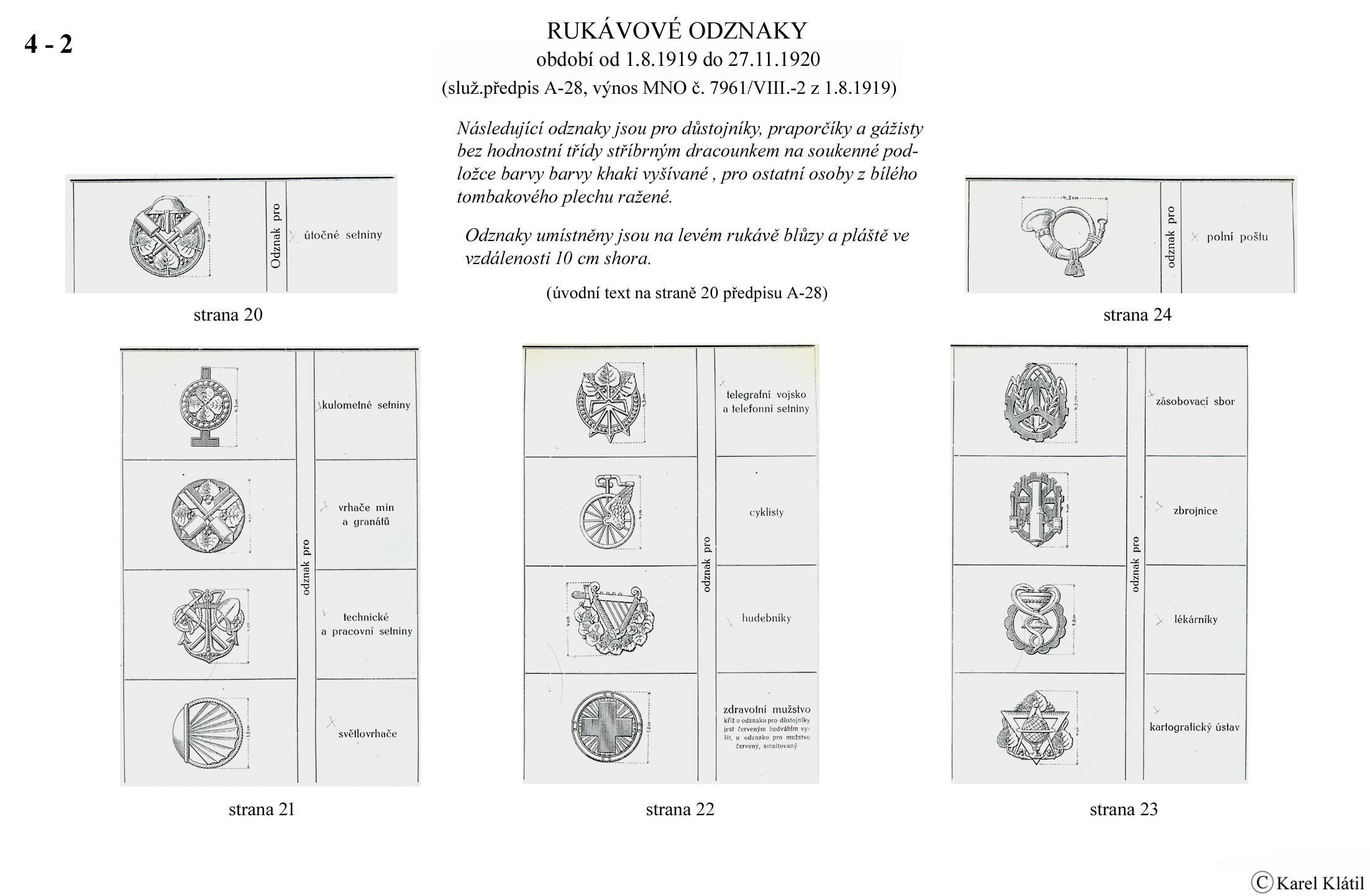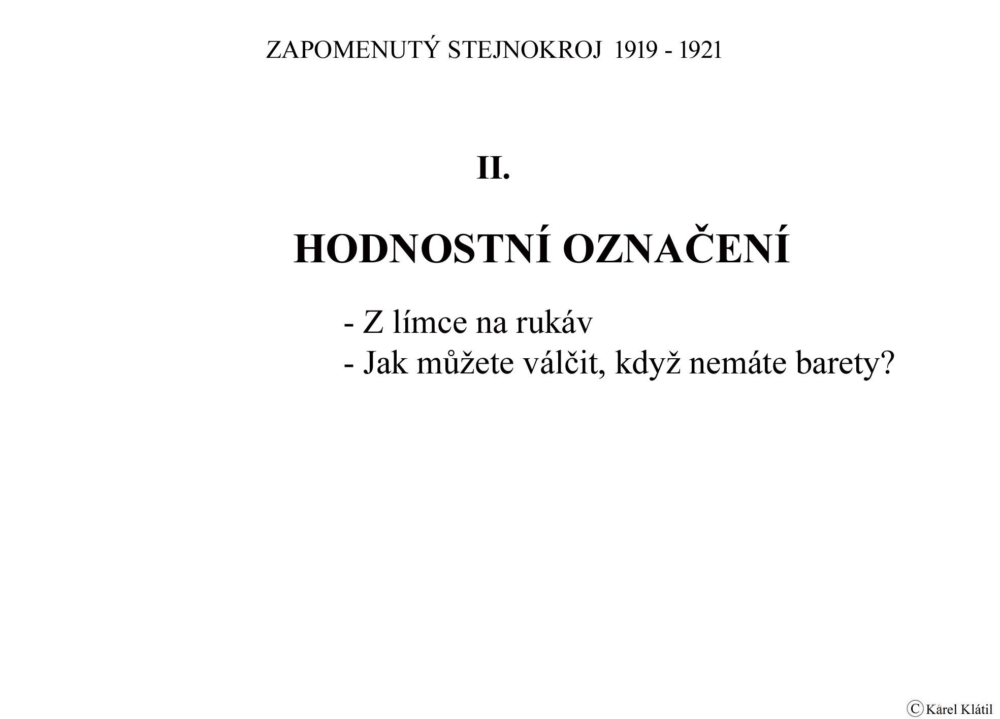 1919/21 Československé vojsko – Divoká léta Zapomenutý stejnokroj: Hodnostní označení: Výložky: Rukávové odznaky: