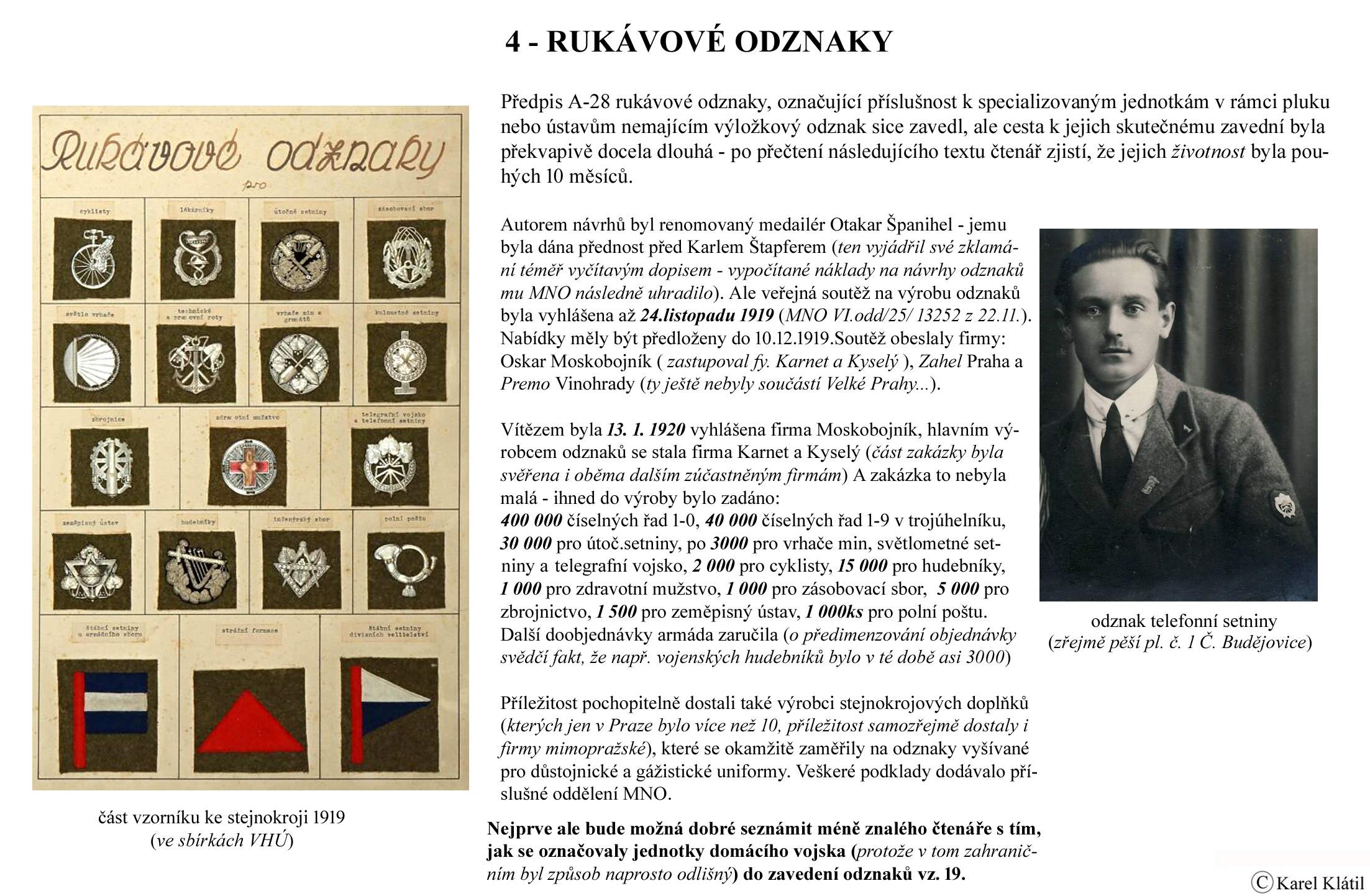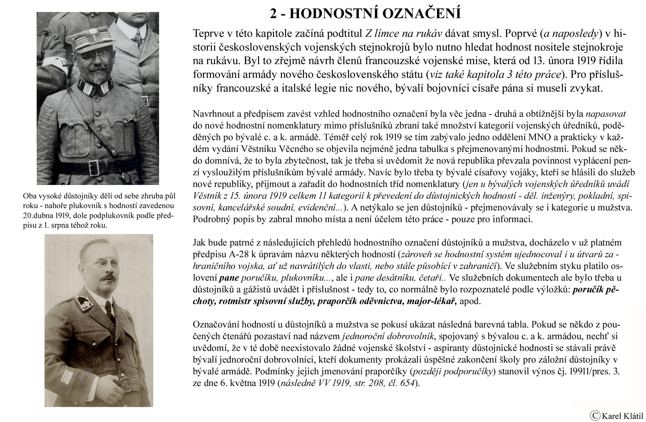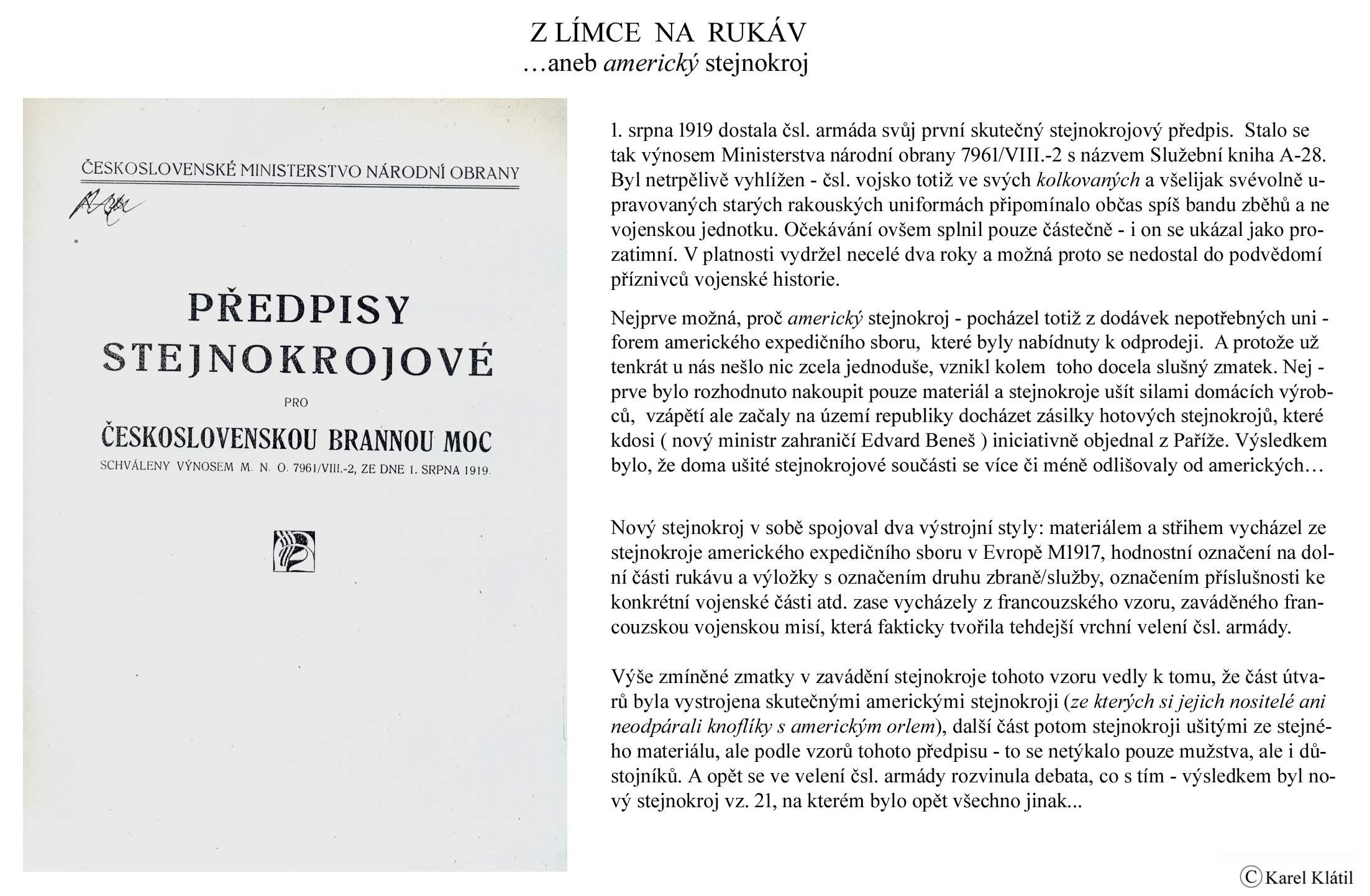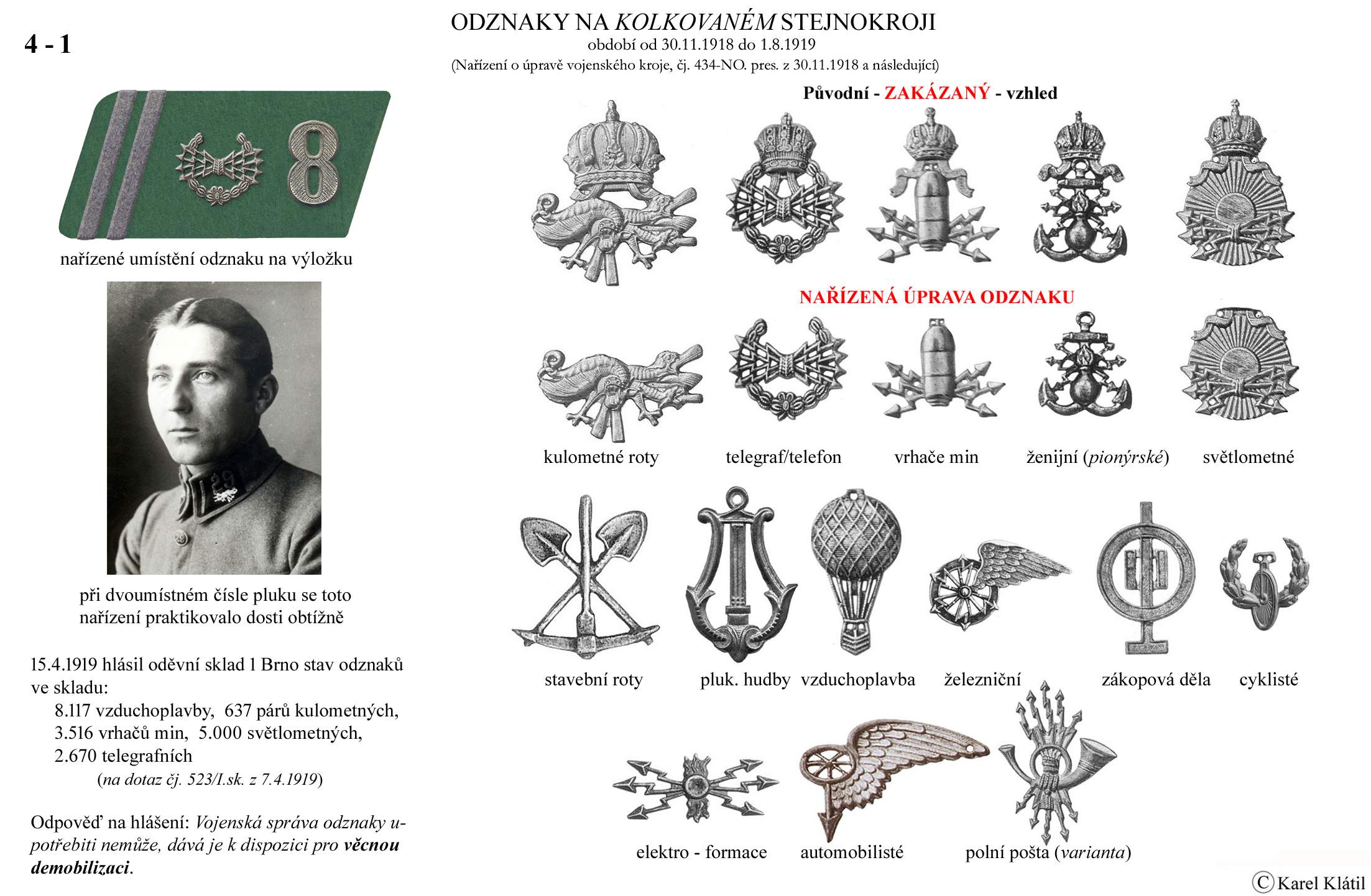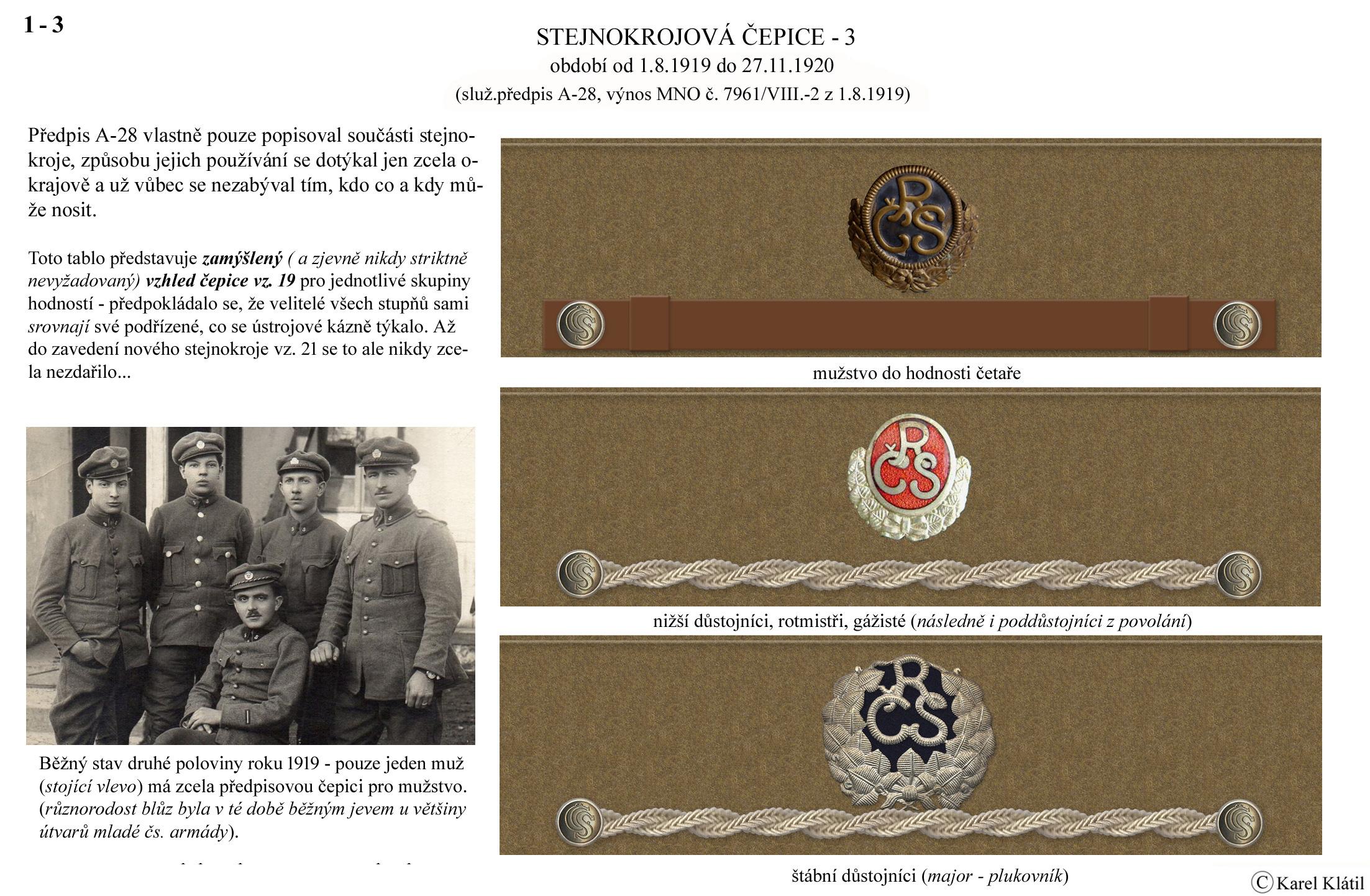 1919/21 Československé vojsko – Divoká léta Zapomenutý stejnokroj: Hodnostní označení: Výložky: Rukávové odznaky: