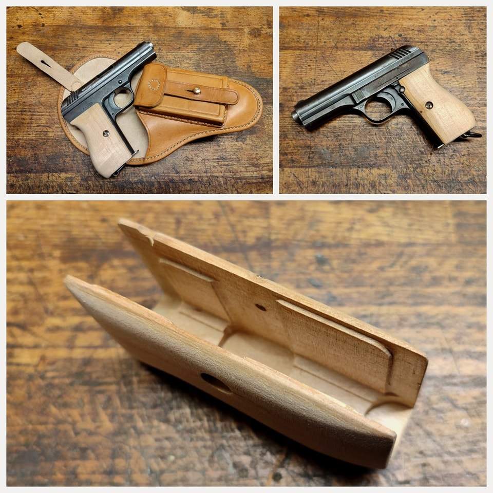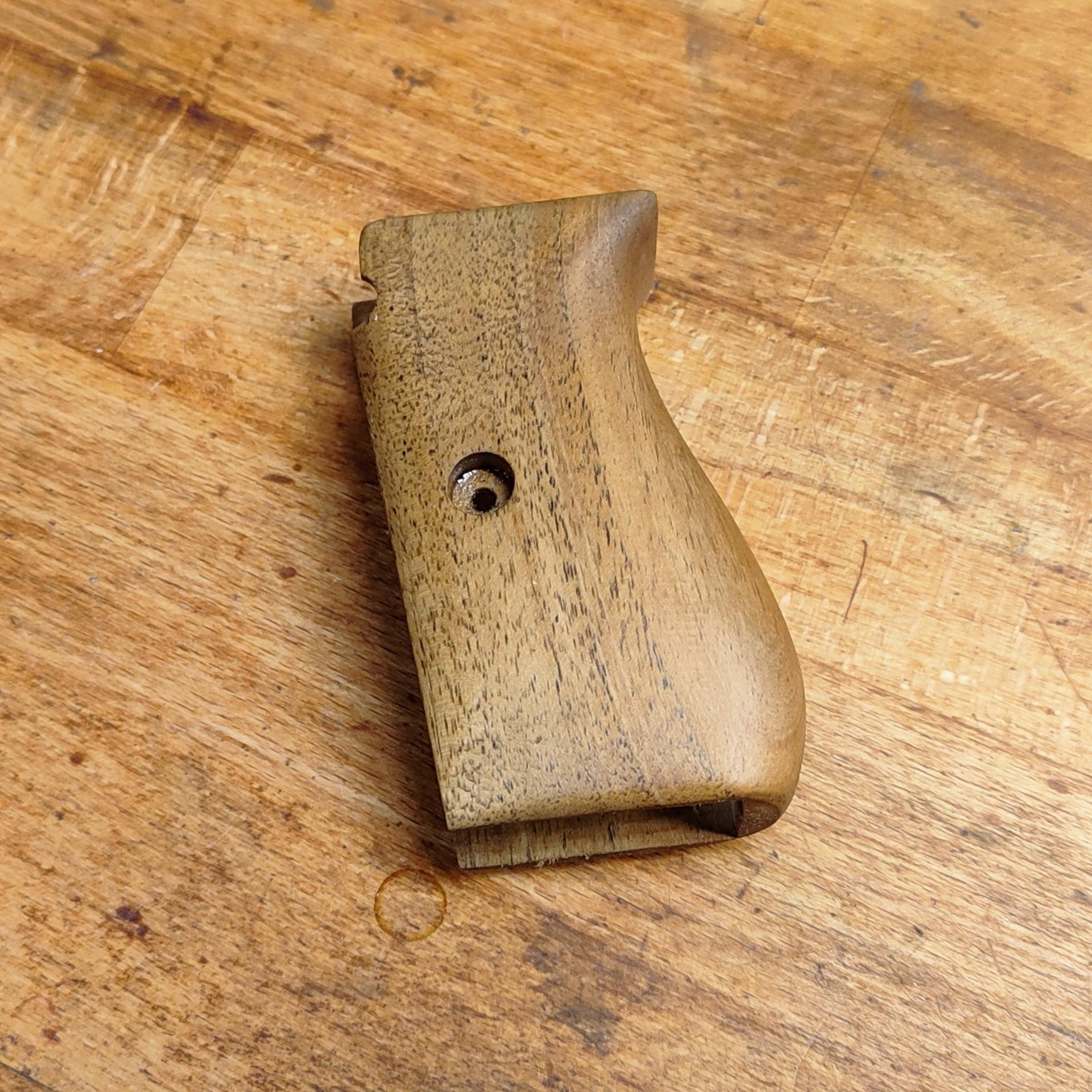Nově vyrobená střenka na československou armádní pistoli vz.24, zcela totožná s originální předlohou.