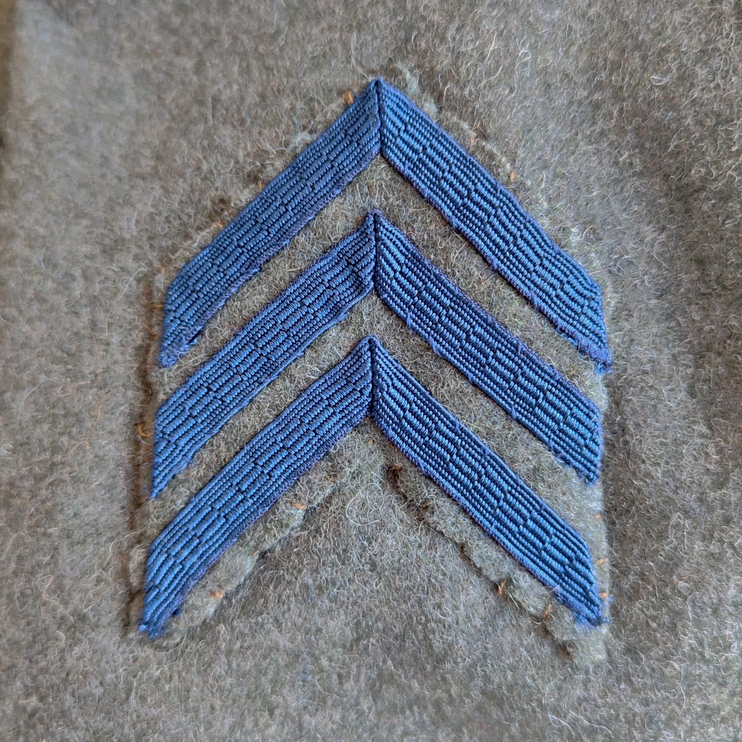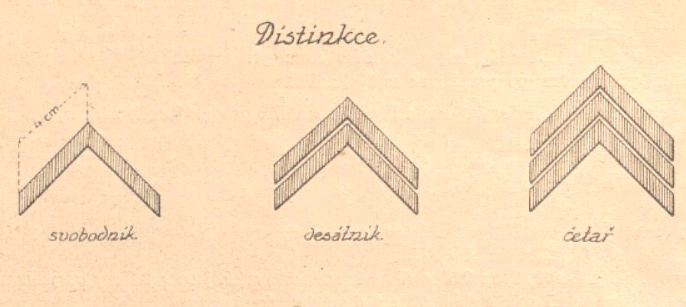 Tkaný hedvábný proužek na hodnostní svobodníka, desátníka, četaře, označení dle předpisu A-28 z roku 1919. Šíře 7mm.